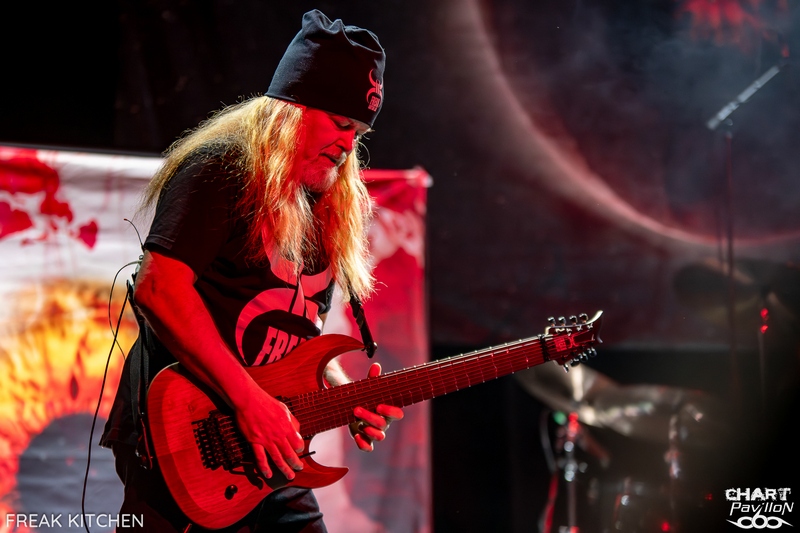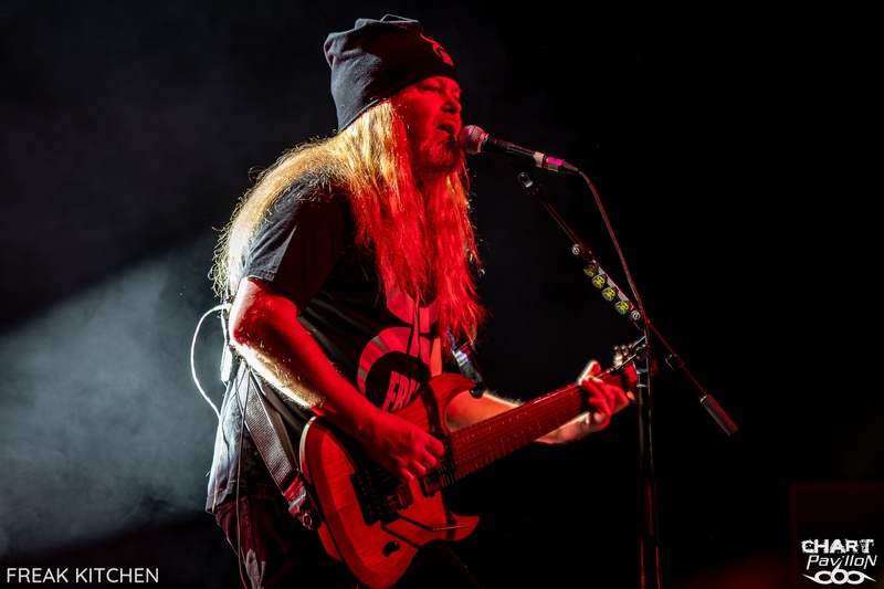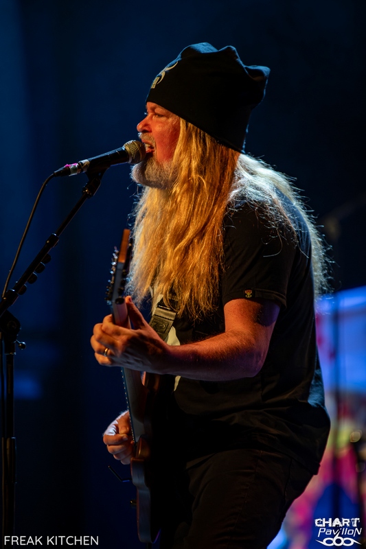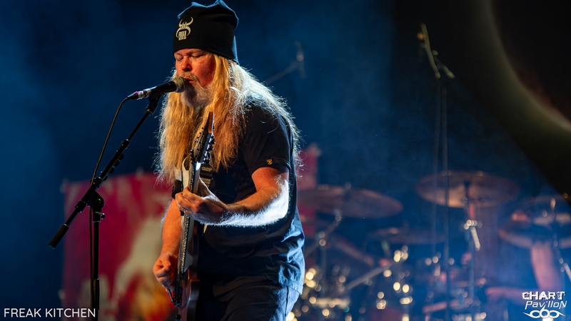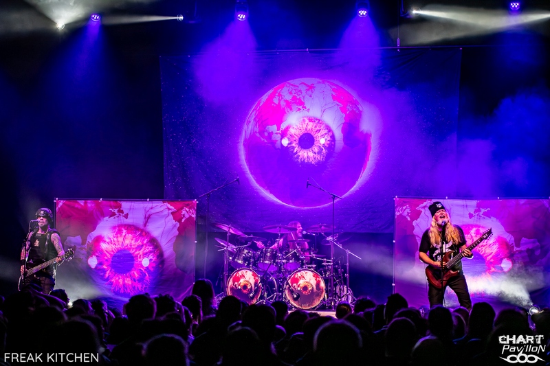 Stéphane ALAUX, aka FANALO, vient donc tout juste de sortir son premier album solo, mais ne vous y trompez pas. Le guitariste bordelais n'en est certainement pas à son coup d'essai. Cela fait près de 30 ans qu'il officie, d'abord dans sa région mais aussi à l'international. La légende dit qu'après avoir vu le groupe en première partie de BUMBLEFOOT, Ron THAL aurait demandé aux musiciens de FANALO & EL MOBO de devenir les membres de BUMBLEFOOT pour ses tournées organisées entre 2000 et 2008. Rien d'étonnant donc à ce que Ron THAL fasse une apparition sur l'album solo du prodige. C'est donc au son du rock et du metal progressif que débute ce concert. Le niveau est élevé, et la bande formée pour la tournée tient particulièrement bien la scène. La demi-heure dédiée au groupe satisfait les fans du style et nous permet de découvrir un groupe en pleine forme et très heureux de venir nous faire partager son rock alambiqué, très bien exécuté. Il est maintenant temps de retrouver le groupe pour lequel nous sommes venus ce soir, FREAK KITCHEN. Le trio suédois est le plus souvent qualifié de groupe de prog. OK, pourquoi pas, même si j'émets quelques réserves à ce sujet. « Everyone Gets Bloody » ou « Morons », qui ouvrent ce set, ont tout de bons morceaux de rock 'n' roll. La différence avec d'autres groupes, c'est le niveau technique des musiciens et tout particulièrement de Mathias EKLUNDH à la guitare et au chant. Ce frontman est tout bonnement génial, à tous les niveaux. En plus d'être un musicien totalement accompli, son attitude sur scène est tout ce que je préfère. Là où d'autres ont un ego surdéveloppé, notre homme se comporte de manière super naturelle. On sent une personne heureuse et consciente de sa chance d'être sur scène, de partager sa musique et un moment privilégié avec son public. Je pense, pour avoir échangé avec pas mal de monde avant la prestation, que c'est un élément important qui fait revenir régulièrement les fans du groupe, qui en tout cas crée un lien très fort, et après tout, n'est-ce pas essentiel ? Avec des personnes à la personnalité aussi simple et forte à la fois, pas besoin de tonnes d'artifices pour mettre tout ça en valeur. C'est aussi ce qui fait tout le charme de ces concerts dans ces salles : la proximité et l'authenticité. Il ne nous reste plus qu'à profiter d'un bon concert avec des morceaux tous aussi cool les uns que les autres, et ils ne manquent pas ce soir ! Sans rentrer dans l'énumération sans fin, on peut citer « Speak When Spoken To », « Porno Daddy », « Raw », « Troll », « Silence ! » ou encore « Propaganda Pie » et « Freak Of The Week ». On aura même droit à un morceau bonus hors setlist en guise de rappel. C'est dire si l'ambiance de la soirée était géniale ! Un très bon concert qui donne envie de revoir ce groupe régulièrement. L'ambiance était au top avec deux groupes qui maîtrisent leur propos. La touche rock 'n' roll de FREAK KITCHEN est indéniable, et ce groupe est vraiment à voir en live pour toute cette bonne humeur partagée sur scène. |