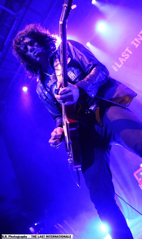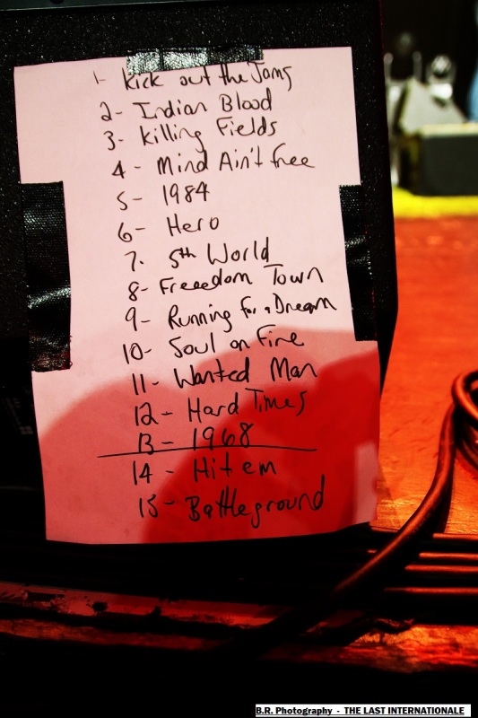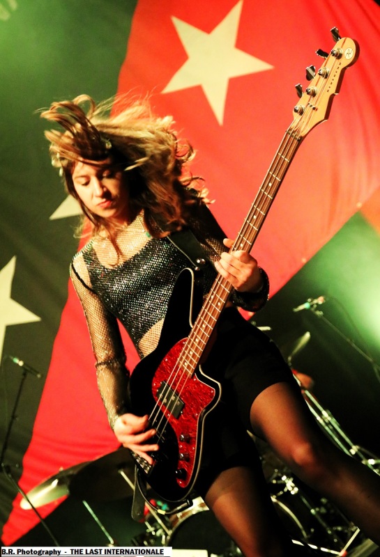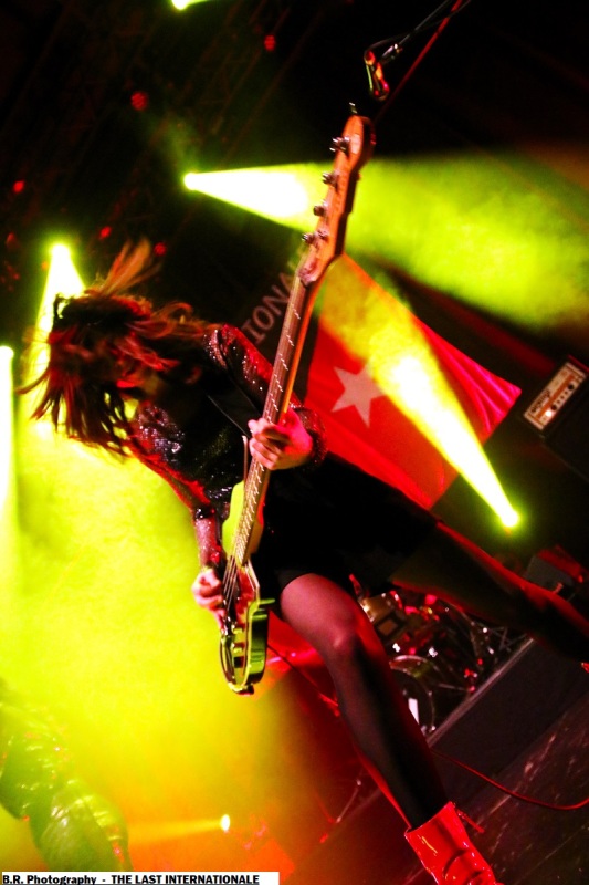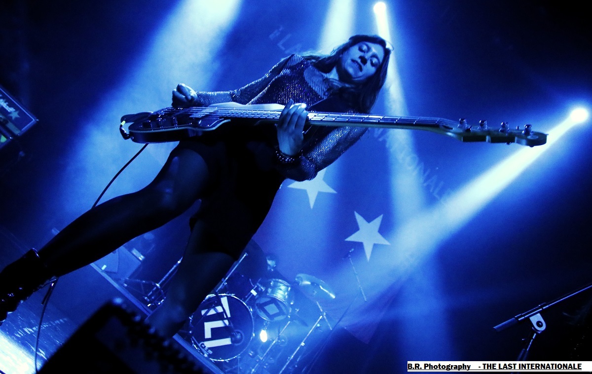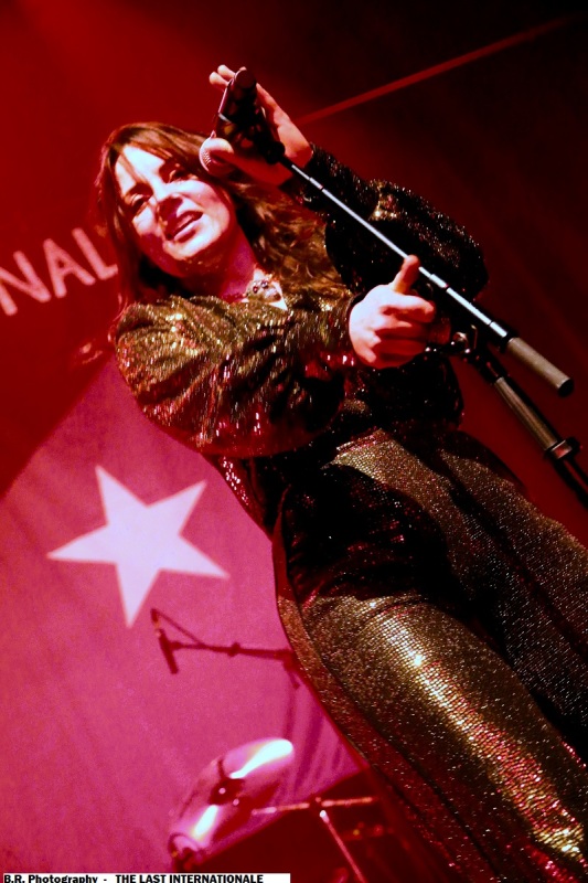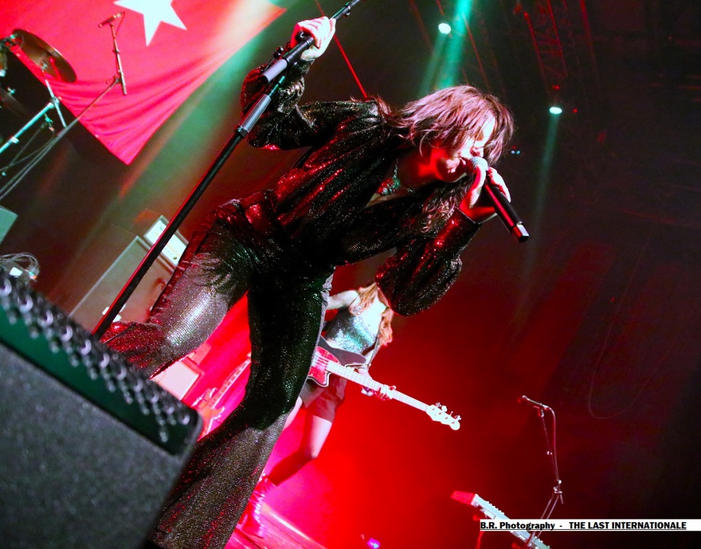 Le back-drop aux couleurs rouge et noire ne laisse aucun doute sur leur engagement pour un rock teinté de « protest song », mais pas que. Alors, dès 20 heures et des poussières le groupe emmené par Dalila Paz au chant et Edgey Pires à la guitare va donc, après avoir enflammé la veille la Belle Electrique de Grenoble, délivrer à Lyon une performance puissante durant près 2 heures de temps. Le groupe annonce d'entrée de jeu la couleur en nous balançant le fameux titre des MC5 « Kick Out The Jams » et nous constatons donc que la soirée va être rock n'roll en diable vu l'énergie déployée en live. The Last Internationale déjà vu en première partie de Kiss et présent en festival comme le Hellfest et le Lollapalooza va se lancer ce soir à la conquête du public Lyonnais, un public qui pour certains n'en croient pas leurs yeux ni leurs oreilles. En effet le quatuor live en fait des tonnes avec une frontwoman menant la danse su scène et dans le public à l’occasion. Le guitariste ne tient pas en place et fait miauler sa 6 cordes à l'envi. Et du côté de la bassiste et du batteur le binaire plombe le tout avec efficacité. Delila se mesure à la guitare acoustique en milieu de set et prend possession du piano ensuite afin de nous faire profiter de ses textes et de sa voix chaude que je situerai entre celle d'une Janis Joplin et celle d'une Linda Ronstadt. Puis elle reprend le micro avec fougue ensuite armée cette fois-ci d'une basse tonitruante. Bref, nous ne voyons pas le temps passer durant cette soirée folle du rock n'roll et les titres issus de leurs cinq albums dont le petit dernier intitulé « Running For a Dream » passent comme une lettre à la poste. Set-list bien étudiée donc avec notamment « Indian Blood », Freedom Town », « Runnig for a Dream, « Soul on Fire » et autre « Hard Times ». Et puis et puis le groupe invite le public à monter sur la grande scène afin de le faire participer au titre final dans une chaude ambiance décontractée. Quel show mes amis, très belle découverte en ce qui me concerne, groupe à voir absolument en live, amen ! Merci à Eldorado pour l'accréditation accordée à Pavillon666, merci aux New-Yorkais qui nous ont conquis avec leur prestation incroyable et merci au public d'avoir joué le jeu. |