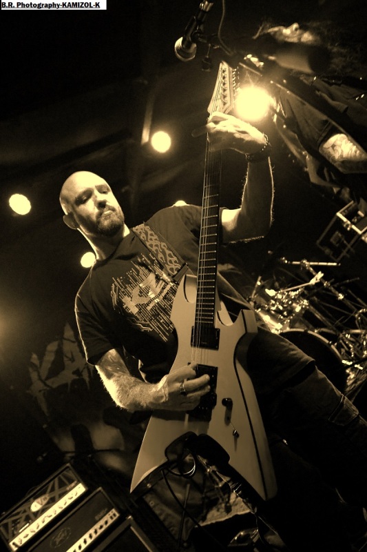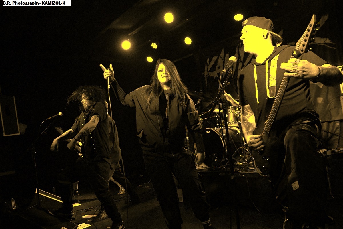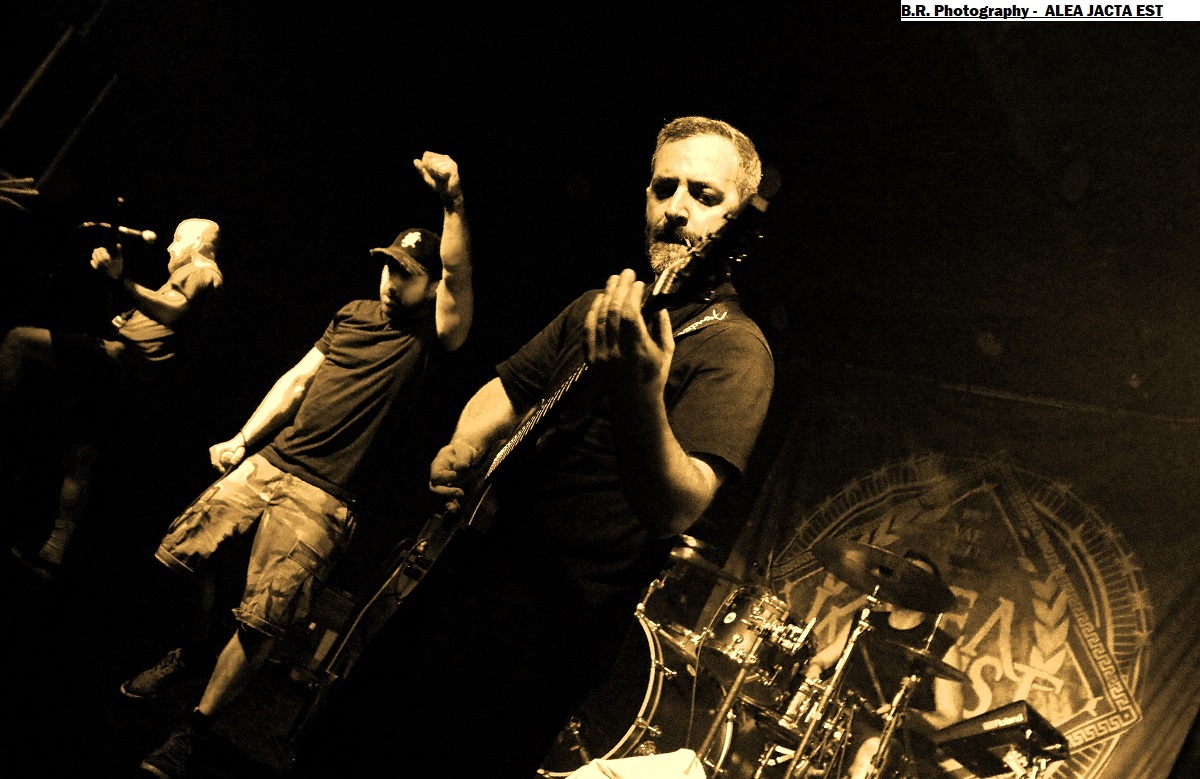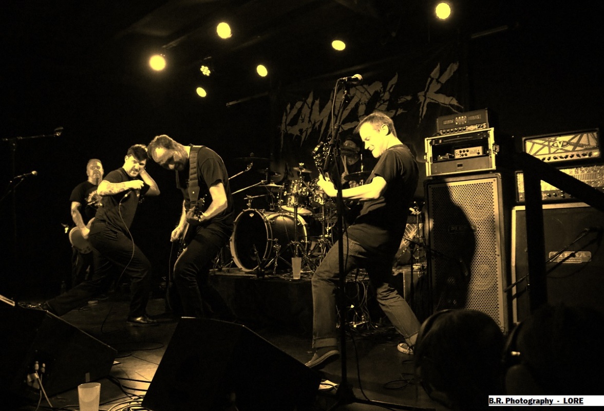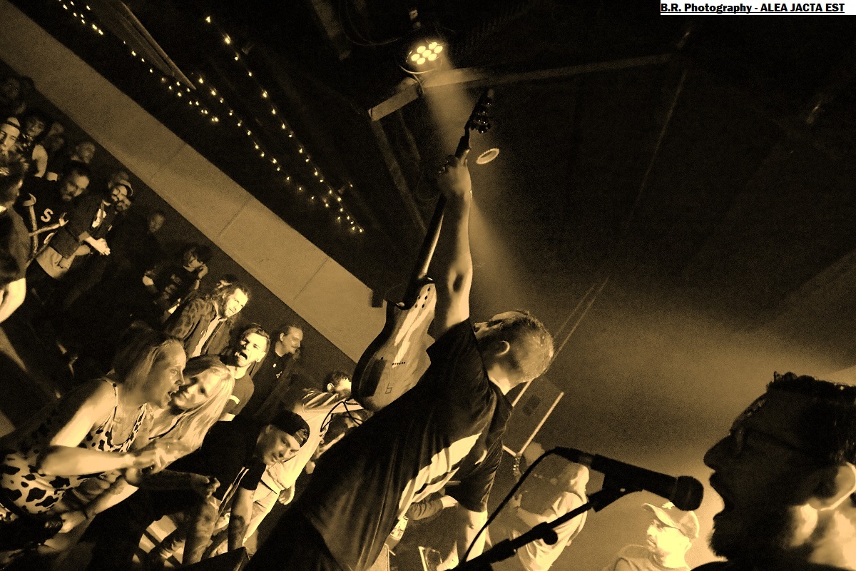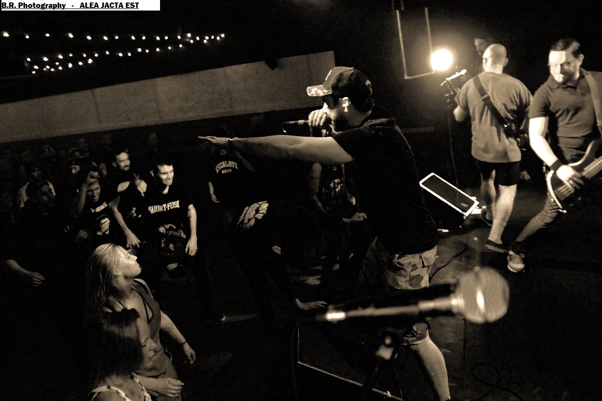 Les locaux de LORE prennent possession de la scène dès 20 heures 30 avec sous leurs bras un premier EP intitulé « Those Three Little Words » paru en Septembre dernier. Lore est composé de membres de la scène hardcore du coin et donne dans un hardcore typé 90's avec en fond d'écran des dérives emocore. Pas de surprise dans leur choix mais leur hardcore est bien foutu et bien pro, on aime tout simplement, ce fus une belle entrée en matière pour ce concert du Samedi soir ! Les Lyonnais de KAMIZOL-K prennent la suite avec leur hardcore/metal bien musclé influencé par le death et le thrash bien souvent . C'est toujours bien tranchant et le duo féminin/masculin aux vocaux percutants est toujours lourd de conséquences. C'est « riffu » et puissant, ça ne nous fait pas de cadeau avec des influences ROTNS, non ? En tous cas (je) on aime vraiment leur puissance de feu métallique en diable et ce soir ça fait plaisir de les apprécier encore une fois en live avec, au final, leur « Get Away » qui met tout le monde d'accord mais aussi tout le monde sur scène voyons !. Alors vous revenez quand vous voulez on adore votre démarche, amen ! On ne présente plus les Toulousain de ALEA JACTA EST qui depuis presque 20 années nous détruisent ce qu'il nous reste de neurones et nous provoquent en live avec leur hardcore/metal. Un hardcore possédant une puissance brute de décoffrage et sans compromis. Et ce soir ce sont les Lyonnais qui vont se défouler devant la scène sous les coups de boutoir de ces légendes du H&C. Il paraît que leurs mosh-pit thrashisant fait toujours un malheur. Oui, cent fois oui comme ce soir dans un Warmaudio remplit de chaleur et de sueur, garez-vous autrement il y aura de la cervelle contre les murs comme le dit souvent Julien le frontman de Benighted ! Le set se déroule donc dans une ambiance sauvage, guitares propulsées en l'air et vocaux rageurs, que du bon donc ! Alors oui le hardcore frenchie se port bien témoin ce que nous avons prit dans la tronche ce soir dans un Warmaudio dévasté (re) amen ! Il convient de remercier encore une fois Lyon Hardcore organisateur de la petite sauterie du Samedi soir et bien entendu merci à notre cher Warmaudio bien accueillant. |
