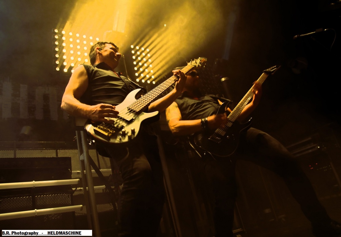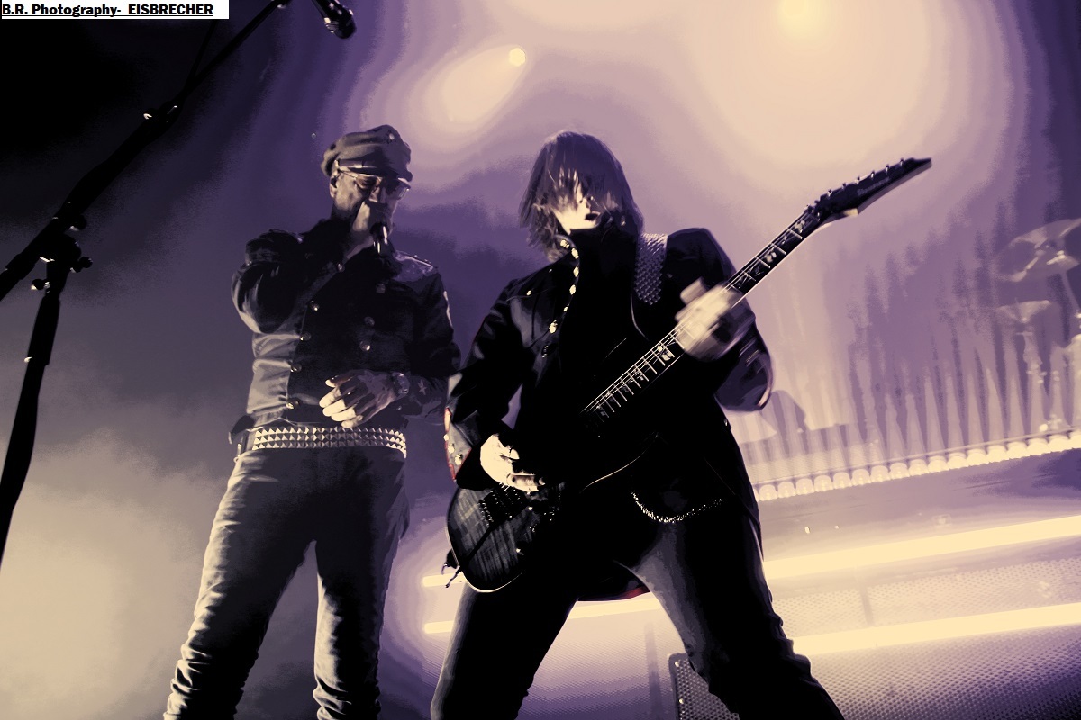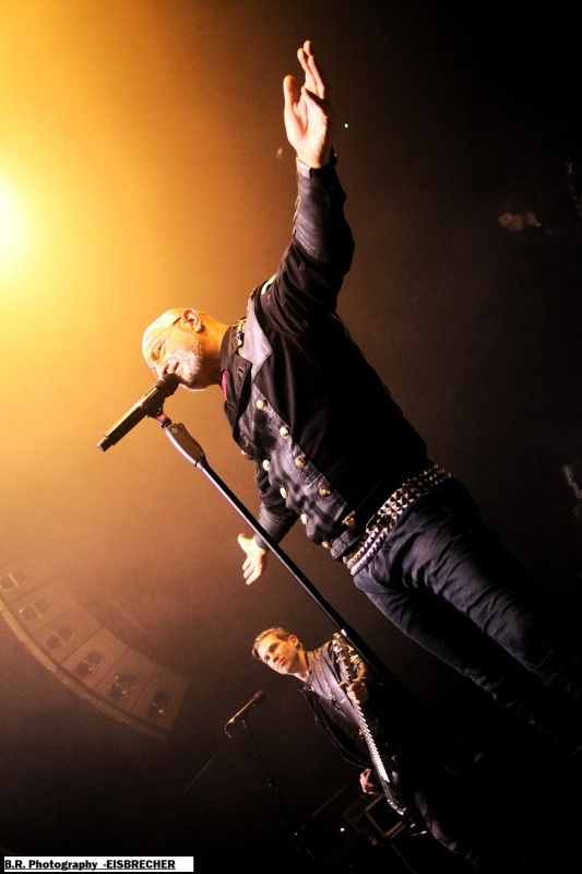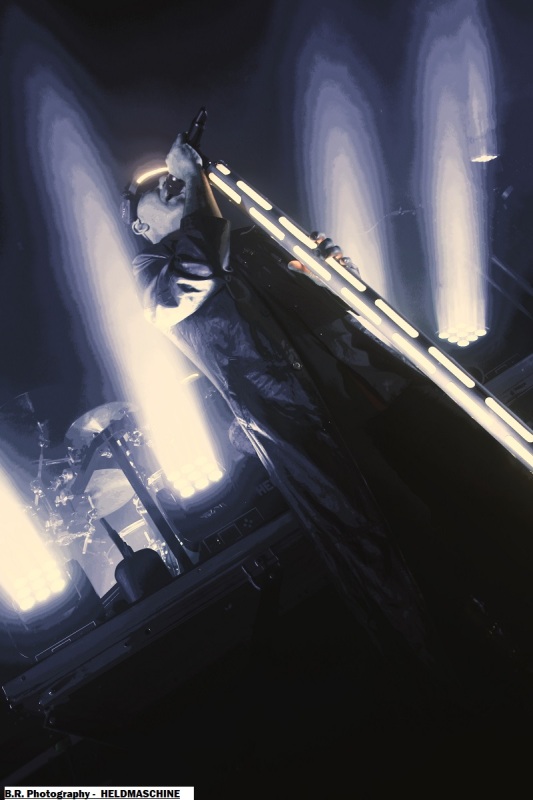 Invités spéciaux de la tournée voici HELDMASCHINE qui dès 20 heurs se présente à nous dans un décorum impressionnant où les lights fusent de partout, avec pour le premier envoi martial des frontales sur les têtes des 5 musiciens afin de nous « éclairer » sur leur metal-indus fort impressionnant musicalement et donc visuellement. Ce groupe issu de la scène « Neue Deutsche Härte » formé en 2008 vient vers nous afin de nous proposer son nouvel album (le 6ème) intitulé « Eizeit » mais pas que. Si au départ le groupe alors nommé Völkerband était spécialisé dans des reprises de Rammstein, aujourd'hui tout s'éclaire (sic) avec leurs compositions originales et leur mise en scène qui nous interpellent fortement. Belle découverte en ce qui me concerne, un certain succès se fait jour pour eux et c'est largement mérité, coup de cœur ! Une heure plus tard après un changement de scène radical, ce sont ceux d'EISBRECHER qui viennent nous interpeller grave dans la fureur de leurs lights bien personnels et leur son puissant et plombé à souhait. Pour ceux qui ne le savent pas encore Eisbrecher a été fondé en 2002 par deux anciens de Megaherz et ce groupe lui aussi est bien représentatif de la « Neue Deutsche Härte' Eisbrecher navigue donc dans les eaux glacée de metal à l'Allemande tel un brise-glace (sic) que rien n'arrête depuis plus de 20 années. Bien sûr la tournée actuelle nous propose des titres de leur nouvel album studio de 2025 intitulé « Kaltfront » (le 9ème) qui fait figure d'album de l'année pour certaines critiques. Bien connu pour leurs concerts quasi exceptionnels ceux de Fürstenfeldbruck sont en passe de rivaliser avec leurs compatriotes de Rammsteine avec leurs compositions variées sur des thèmes originaux et captivants dominés par la voix puissante d'Alexandre Wesselsky et soutenus en live par des décorums remarquables. Et ce soir ils ont retourné la Rayonne tout simplement encouragés par un public qui n'en attendais pas moins de leur part, belle démonstration donc avec un aspect fortement martial dans l'ensemble, on aime ! Merci à Sounds Like Hell Productions d'avoir permis à Pavillon666 de chroniquer cet excellent concert de metal indus et merci à la Rayonne évidemment pour l'organisation matérielle. |