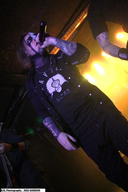 Nous commençons la soirée avec le groupe de groove metal/nu-metal RED GORDON. Influencés par Slipknot et autre Linkin Park, ces Auvergnats formés en 2017 nous ont déjà offert plusieurs enregistrements dont un second album de 2024 intitulé « Nothing Less Than Everything » que j'avais eu le plaisir de chroniquer pour Pavillon666 à sa sortie. Alors, sur CD ça passe plutôt bien, mais en live ils confirment et signent leur envol à l'aide d'un metal/hardcore/prog bien noir et parfois colérique. Red Gordon a donc tout comprit au metal dit « moderne » et ce soir ils nous ont offert un set d'une rare efficacité, on aime tout simplement ! S 'en suit la prestation de STRIVERS le groupe Lyonnais fournisseur d'un « Precious Core » leur second méfait discographique. Strivers, bien connu pour son énergie scénique opérant dans la zone rouge (et noire) d'un mix death/thrash/hardcore particulièrement efficace en live donc va, de part ses envois et sa présence musclée, ravir un public déjà bien chaud, après, le set précédent. Bon, généralement les médias ont classé Strivers dans la case metalcore, mais à mon avis ce serai plutôt du « brutalcore » bien technique aux entournures avec des vocaux directs « in your face ». Alors, bien que momentanément (mais ça ne va pas durer) on se retrouve avec un trio en face de nous, chant/guitare/batterie, Strivers va nous démontrer qu'il peut retourner une salle de concert tout simplement, quelle claque ! Et en parlant de metalcore voici la tête d'affiche de la soirée qui a pour nom LORDS OF SYLEN. Une formation ui débarque devant un public composé essentiellement de fans ultimes, famille etc...Tout ce monde arborent fièrement le t-shirt au nom de leur album « The Reign Of Hades ». L'accueil est chaleureux et bruyant devant la scène, alors que dire de la prestation de ces Lyonnais ce soir ? Eh bien le groupe essaie de mixer le nu-metal, l'electro et le rock mainstream style Muse. L'assistance semble aux anges ingurgitant bruyamment leurs compositions. Alors est-ce une nouvelle étoile filante du metal qui joue devant nous ? Je ne puis répondre à cette question en toute honnêteté. Tout ce que je puis vous dire c'est qu'au bout de quelques titres et de quelques photos je suis rentré chez-moi n'adhérant pas du tout à leur démarche, mais cela n'engage que moi évidemment, amen ! Merci aux organisateurs, aux musiciens et au Rock n'Eat pour ce petit bal metal du Samedi soir ! |