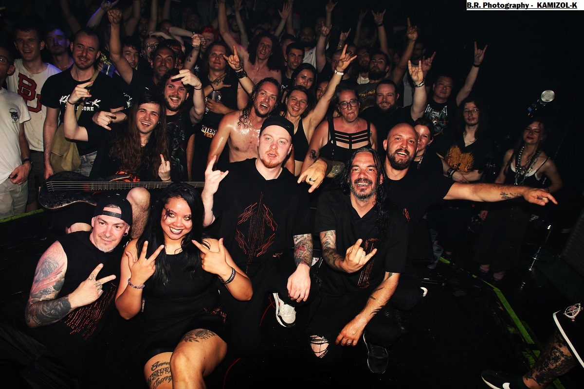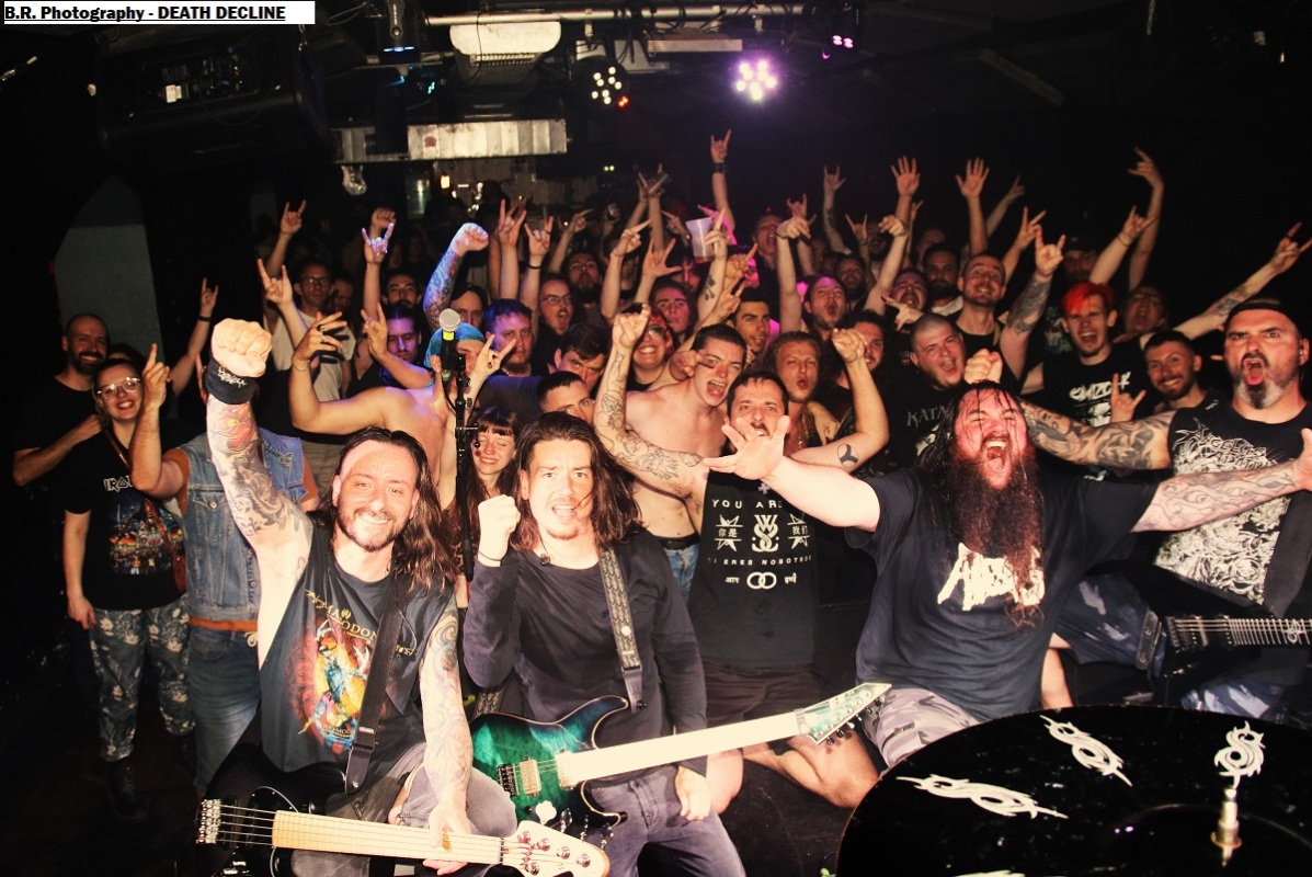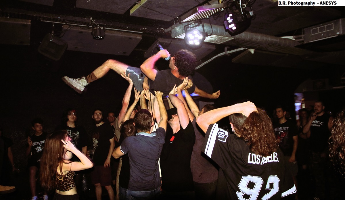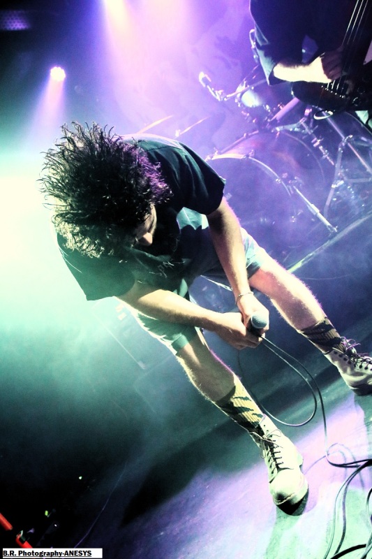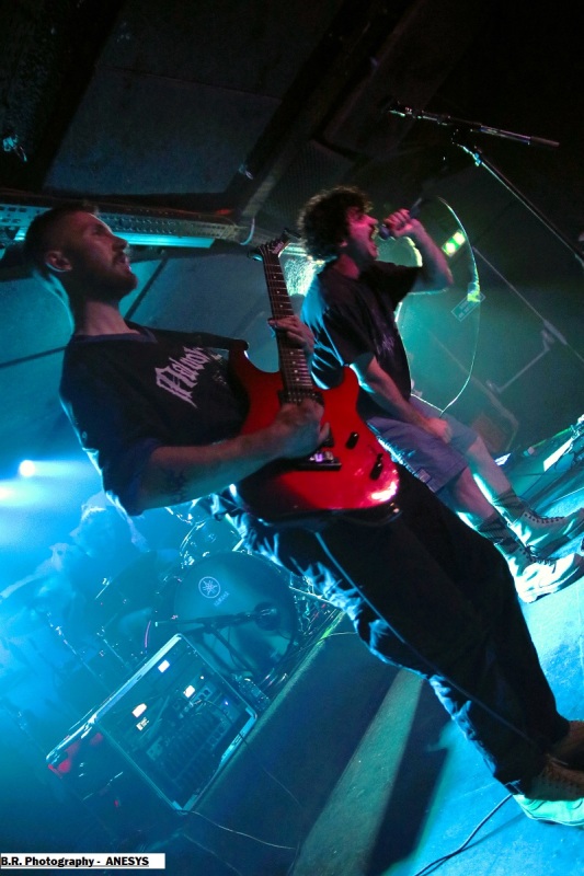 Alors, dégustation ce soir dès 20 heures 30 dans les sous-sols du quai Arloing où la chaleur et la sueur seront de mise durant le repas naturellement ! ANESYS nous propose un death-metal plutot alambiqué alternant le sucré et le salé, l\'ambiance calme et les débordements bruts de décoffrage bien speed. Bien sûr nos amis Rochellois sont venus afin de promouvoir leur nouvel enregistrement intitulé « Ice Age », un album qui nous offre toute la palette de leurs possibilités créatives. Et en live le rendu est à la hauteur de leurs ambitions. Objectif donc, varier les plaisirs en se faisant plaisir, en nous proposant du groove, des ambiances planantes sombres et émotives suivies de déferlantes sauvages à l’envi. Bref, ce groupe a marqué des points ce soir rien qu\'à voir l\'activité d\'un public déjà bien agité, ça promet . La tension va encore monter d\'un cran avec les Bourguignons de DEATH DECLINE qui vont nous faire monter la moutarde au nez (facile celle-là!). En effet les Dijonnais ne sont pas venue ce soir à Lyon pour nous offrir un menu fade, sans aucune saveur mais pour nous faire avaler leur thrash- death bien épicé. Avec eux, ça passe ou ça casse, mais au bout du compte ça passe très bien avec leur mix enragé de thrash, de death, voire de, heavy metaaal. Le public ne s\'y trompe pas en noyant la piste et la scène en balançant dans son agitation ses boissons houblonnées. Ce groupe n\'est pas né de la dernière pluie metal qui tâche et avec sous leurs bras une discographie importante, dont le petit dernier « Pattern of An Imminent Collapse » il va nous envoyer en continu des tartes dans la « g...le » mais avec doigté SVP. Le groupe voulait nous faire remuer donc et ce fus un pari gagné ce soir ! Du death au hardcore il n\'y a qu\'un pas que nous franchissons allègrement avec la venue de lyonnais de KAMIZOL-K Alors en guise d\'intro nous dirons que là où Kalizol-K passe l\'herbe ne repousse pas, c\'est tout ce que j\'ai trouvé pour vous dire que ce soir leur live fut remarquable en diable. Ils sont venus gentiment nous présenter leur nouvel album \'Diary » à pataitre le 27 Juin prochain et ce soir dans l\'attente du set le public piaffait d\'impatience lors des derniers réglages techniques, c\'était le calme avant l\'orage car dès le premier titre « Battle Royal le public, déjà chaud comme la braise, s\'est envoyé en l\'aire sous les coups de boutoir hardcore prodigués par le sextette. Alors, de titre en titre la tension est encore montée d\'un cran, le duo chant féminin, chant masculin accompagné de musiciens au top niveau nous ont détruit ce qu\'il restait de nos neurones Et ce jusqu\'au dernier titre, le fameux « Get Away » avec les rôles inversés, public sur scène et musiciens dans la fosse pour une fin de set conviviale et un brin chaotique, quelle claque, le Rock n\'Eat n\'en revient toujours pas, amen ! Merci donc au Rock n\'Eat et à tous, les musiciens qui ont foulé la scène de Vaise-City pour une soirée apocalyptique dont on se souviendra encore longtemp |