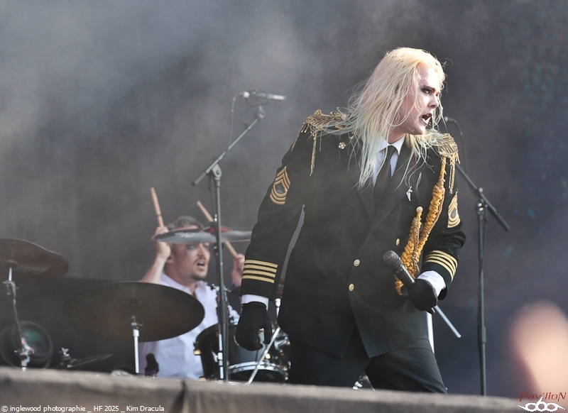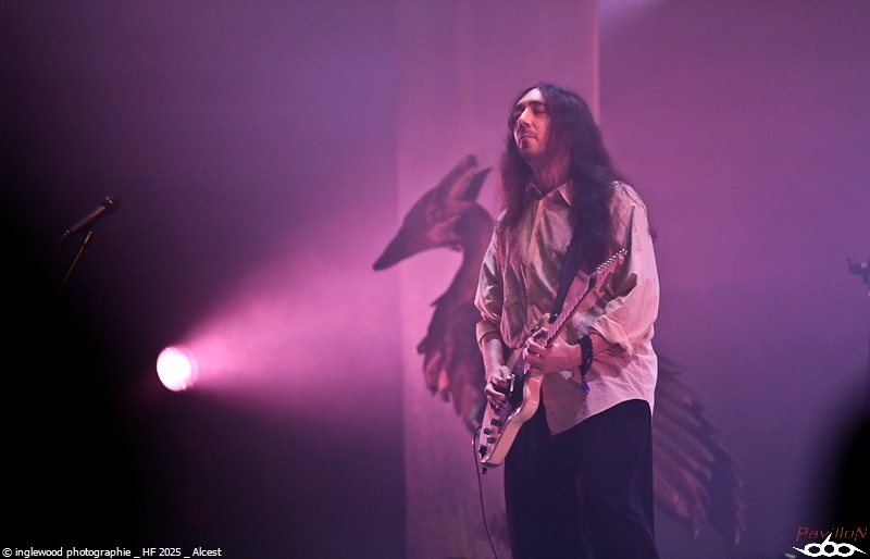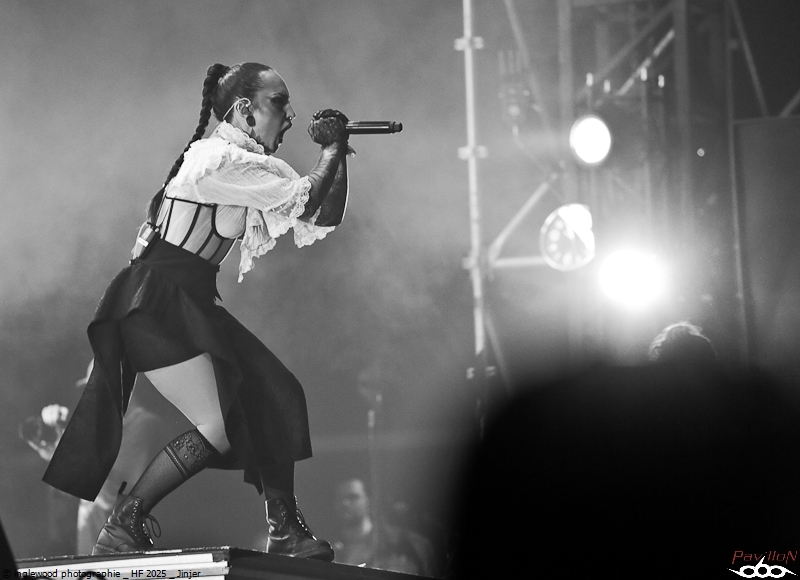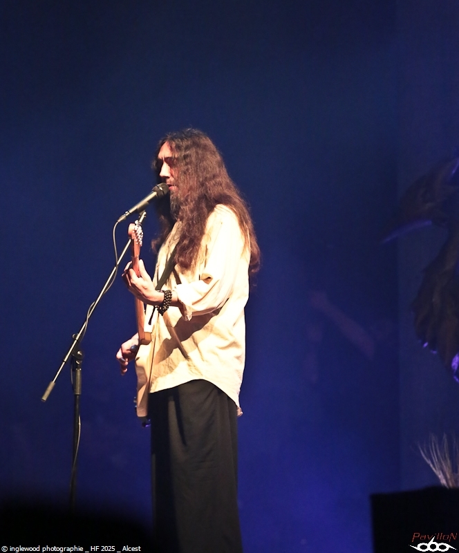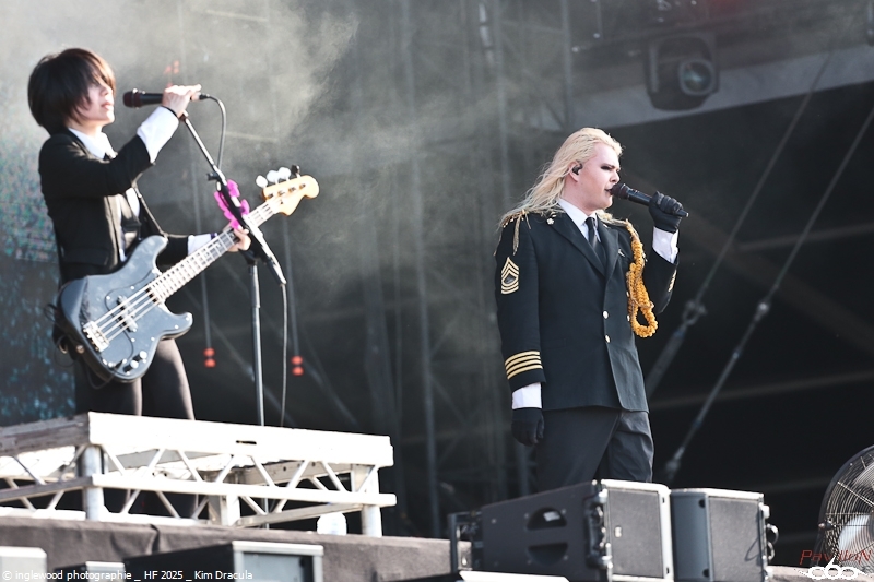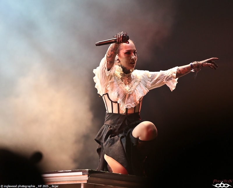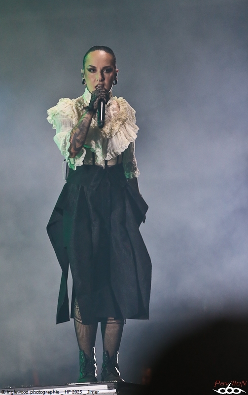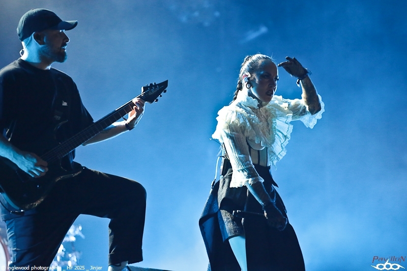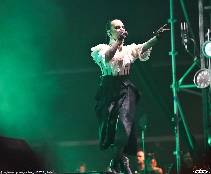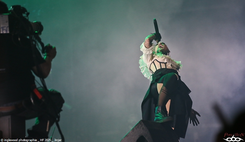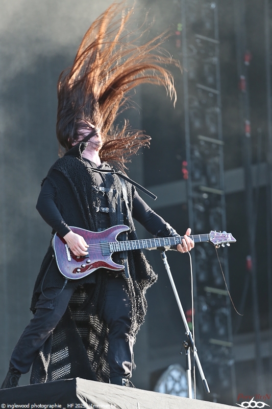 Comme tous les ans, une organisation remarquable qui se perfectionne par petites touches d’années en années. On notera les aménagements de l’entrée du fest avec la brasserie évidemment, mais également une monumentale porte qui encadre magnifiquement la Gardienne, énorme machine magnifique et stupéfiante. Pas de gros reproche là-dessus, peut-être ce goulot au rondpoint de la guitare qui bouche un peu la sortie mais ce n’est vraiment pas grave. J’en profite pour remercier les équipes de bénévoles, de salariés, l’accueil, la sécu, les stands de nourriture, les désoiffeurs, les videurs de poubelles, ceux qui nettoient les toilettes, bref tous ceux qui nous permettent de nous immerger complètement en oubliant tous les soucis, merci !! Pour la partie programmation, je dirais que certaines programmations MainStage principalement furent déplacées ou hors sujet de mon point de vue. J’y reviendrai en détail ci-dessous. Toutefois, il semble qu’un grand nombre de festivaliers aient été satisfaits de cette programmation plus mainstream, confirmant au passage l’évolution du public. Allez, rentrons dans les détails de cet enfer 2025 ! Jeudi 19 juin :6 Kim Dracula - Alternative Metal On démarre avec une petite sensation tik-tok qui m’avait interpellée cette année avec son mélange rap/métal/électro et son look atypique. Alors, certes, le personnage est atypique, mais il ne se passe pas grand-chose, un sentiment de déjà vu et une prestation originale mais vite oubliée. Imminence – Metalcore Là, on touche au magnifique, les Suédois proposent un post-metalcore (si, si) où l’agressivité et les mélodies se mêlent de la plus belle des façons. Le chanteur violoniste, hypercharismatique, ajoute un plus au concert et aux titres, tous vraiment très efficaces. Un groupe à revoir. Jinjer - Progressive Metalcore Mon amour pour ce groupe n’est plus à démontrer et certains trouveront que je manque d’objectivité, mais force est de constater que Jinjer a encore une fois donné un show d’une grande qualité. Il est indéniable que Tatiana, telle une force d'attraction, capte tous les regards. Ses prouesses vocales, sa manière de se mouvoir et la qualité des textes constituent autant d'éléments qui font de ce groupe un acteur majeur sur la scène actuelle. La programmation sur l'Altar reste un mystère pour un groupe qui aurait mérité une belle Maistage assurément. Korn - Nu Metal Professionnel, prévisible, régressif et jouissif. Voilà, Korn assure et c’est tout. On passe un moment intense et on chante sur tous les titres, bref super ! Alcest – Shoegaze J’attendais ce moment avec impatience. Le dernier album d’Alcest est pour moi une merveille et je voulais ressentir la même vague d’émotion en live. Nous arrivons en avance et apprécions le décor bien travaillé rappelant la pochette de « Les Chants de l'aurore ». Le set commence et là, patatras !! Le mix est immonde, tout dans la grosse caisse, un bain de basses qui écrase tout sur son passage. La voix est inaudible et la guitare en son clair idem. À part ça, le climat est conforme à ce que l’on attendait et le public se montre réceptif et enthousiaste. Une vraie communauté s’est formée autour d’Alcest et cette bienveillance est communicative. Electric Callboy – Electronicore Que l’on apprécie ou non Electric Callboy, on ne peut pas leur retirer leur sens du spectacle ainsi que le travail et le soin apporté à cette prestation. C’est un indescriptible moment de lâcher prise hyper fun et libérateur que nous proposent les Allemands. Que de tubes, souvent un peu débiles, mais le public a bien compris le concept et participe volontiers et avec beaucoup de seconds degrés. Electric Callboy, c'est à voir au moins une fois. Vendredi 20 juin :11 Furies - Heavy Metal Du heavy à l’ancienne avec des filles bien badass ? On en voulait et Furies n’a pas loupé l'occasion d’en donner une belle dose au public venu en masse sous la tente. Super en place et assez impressionnant, le groupe nous a décoiffés et je n’ai pas vu le temps passer, well done ! Belore - Atmospheric Black Metal Fort d’un excellent album « Eastern Tales », Belore et son Black atmosphérique/ Fantastique/ Médiéval ont, sans mal, installé leur univers dans une Temple attentive. Il se dégageait une certaine sérénité et même une poésie latente que nous sommes nombreux à avoir aimée. Amira Elfeky - Alternative Rock Migration vers les mainstages pour une après-midi féminine qui commença avec Amira Elfeky et un son assez pop et fédérateur. Connue pour sa participation sur un titre de Architects, l'Américaine faisait figure d’inconnue pour beaucoup. Quelques titres aux refrains identifiables et une prestation honnête, mais pas de quoi se rouler dans l’herbe déjà plus très verte. Future Palace - Post-Hardcore À peu près la même chose avec Future Palace, pas désagréable mais rien qui ne se démarque. On finirait par croire à des produits bien marketés. La chanteuse est très mignonne et donne tout avec ferveur, sur des titres bien écrits. La prestation étant assez courte, on n’a pas le temps de s’ennuyer, c’est déjà ça. The Warning - Hard Rock Ohh, là, c’est autre chose, on change de dimension avec le trio de frangines The Warning » ! Pas le temps de respirer que le groupe enchaine les tubes à 100 à l’heure. C’est une douche hardrock que se prend la Mainstage et c'est bien fait, fédérateur, puissant et terriblement efficace, The Warning est un groupe qui va devenir énorme. Nervosa - Death/Thrash Metal Un vrai bonheur que le thrash des filles de Nervosa. Ouf, quelle puissance et quel plaisir régressif, cette impression de retour aux plus belles heures du heavy de la fin des années 80. Une belle claque en tout cas et un bel échauffement pour le concert d’Exodus un peu plus tard. Spiritbox - Alternative Metal Spiritbox est dorénavan