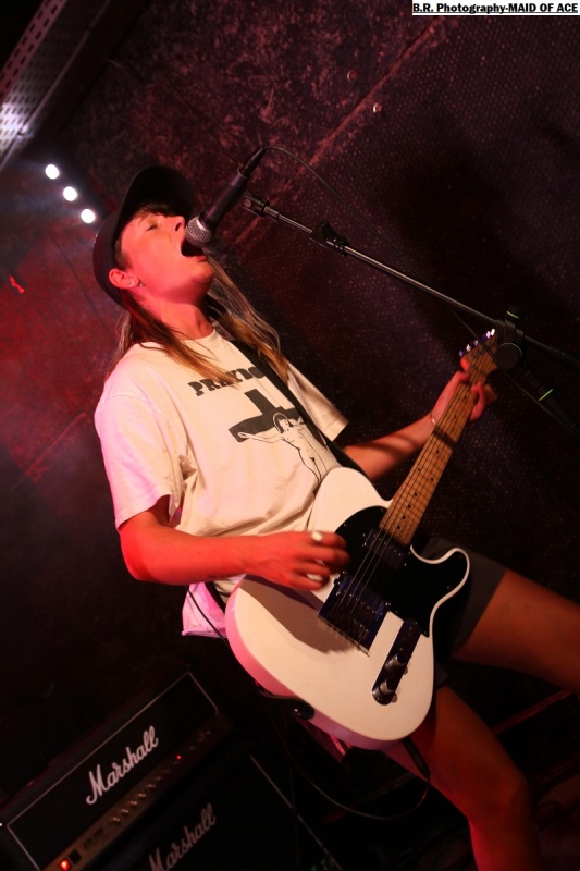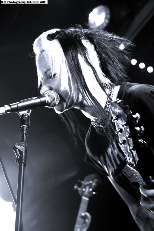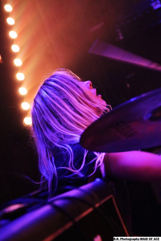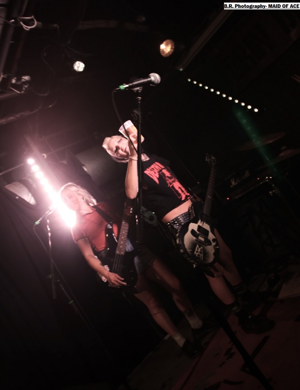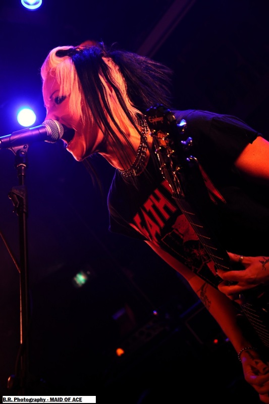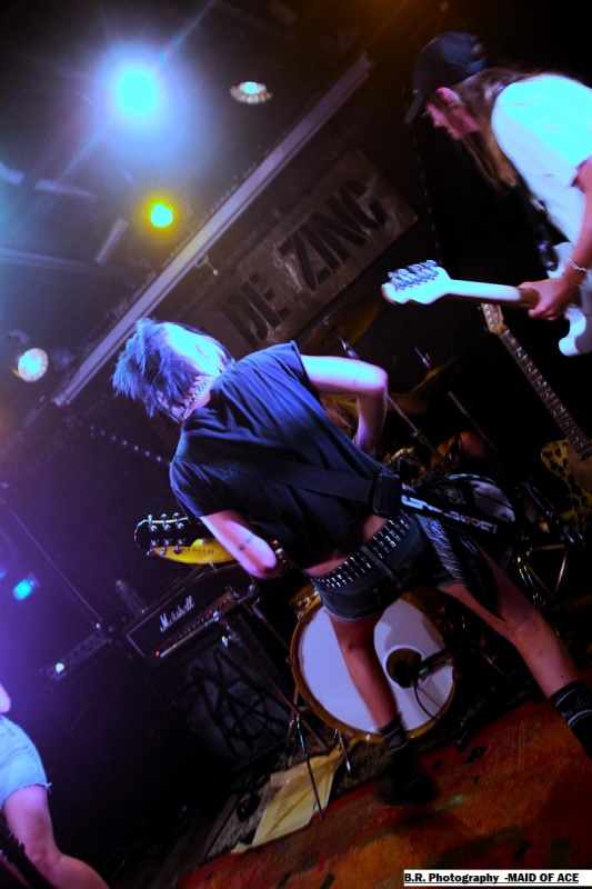 Alors, à nous les petites Anglaises qui ne font pas dans la dentelle cela se confirme encore cette fois-ci. Après les premiers titres et passé la surprise pour ceux qui ne les connaissent pas, le pogo est lancé enfin, comment résister ? Ce soir pas de « shampoing » aux boisson houblonnées devant las scène , mais ce n'en est pas très loin ! Il faut dire que les filles ont de l'énergie à revendre et nous délivre un punk brut de décoffrage, furieux à souhait, sans compromis ni faux semblants. Et depuis 2012 elles brûlent les planches des salles de concert et de festivals un peu partout en Europe avec sous leurs bras leurs enregistrements « Maid of Ace », « Maid in England » et autre « Live Fast or Die ». Tout un programme donc et ce soir à Chambéry elles ont tout donné bien sûr ! Et même si en milieu de set une coupure de courant sur scène a interrompu leur élan pendant de longues minutes elle ont relancé la machine keuponne à fond les manettes (les cannettes ?). Bref on aime ces frangines qui n'ont pas froid aux yeux et qui nous ravissent à chaque fois avec leur punk/rock de meufs qui met en folie les crêtes, amen ! Merci donc au Brin de Zinc pour avoir permis à Pavillon666de participer à cette soirée qui valait largement le détour, merci aussi pour son accueil et merci au public qui a remplit les lieux et instauré une ambiance toute en chaleur et en sueur, punks not dead, enfin quoi ! |