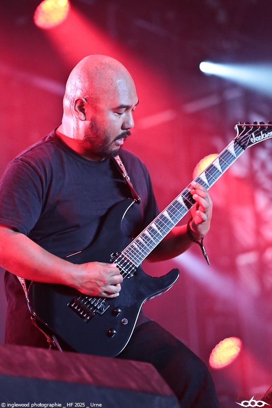 J’avais été déçu du passage de Lorna Shore en 2023, trop froid, pas de communication et aucun mouvement sur scène. Cela a-t-il été mieux en 2025 ? Un peu, oui, déjà sur les interactions avec le public, Will Ramos s’est considérablement réchauffé et nous emmène plus avec lui. Cependant personne ne bouge de ses 2m², ça, c’est une constante.