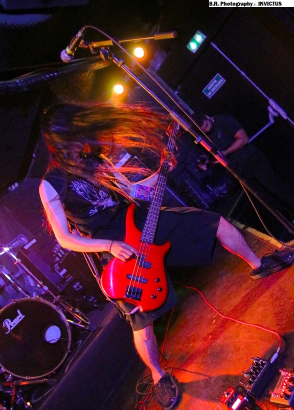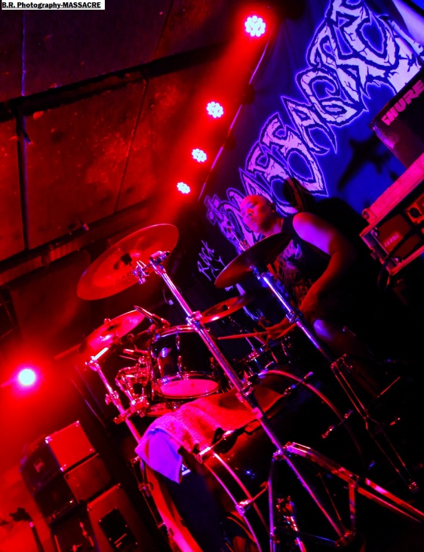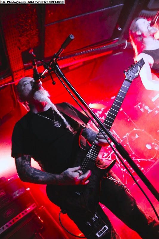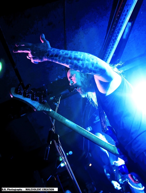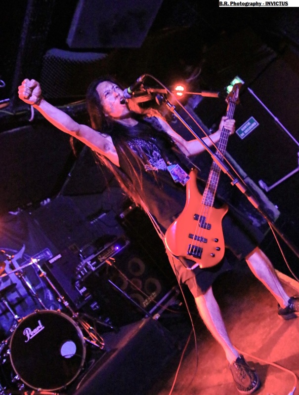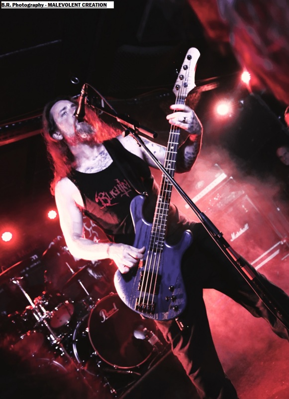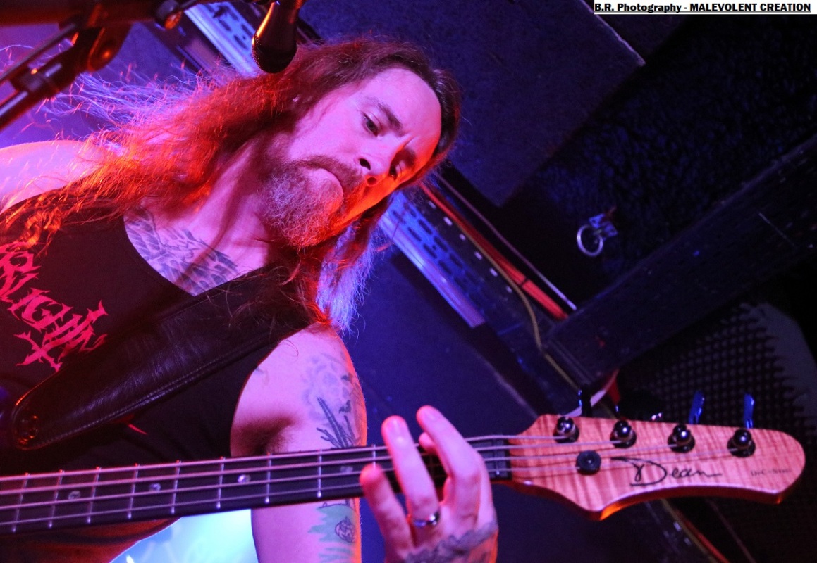 Alors, inutile de vous dire que les voûtes de notre club préféré ont tremblé sous les coups de boutoirs de ces quatre groupes de metal-de-la-mort-qui-tue dans un registre death old-school bien entendu ! Il ne fallait pas être en retard ce soir car dès 19 heures quinze nos amis d'INVICTUS, trio de pays du soleil levant, ont ouvert la soirée avec perte et fracas et placé la barre déjà bien haute d'entrée de jeu. Cette jeune formation nipponne ne fait pas dans la dentelle et malgré sa création relativement récente (2015)elle nous prouve ce soir qu\'elle en a sous la semelle comme l\'on dit communément dans ce registre mortuaire qui nous intéresse. Mêlant thrash et death en brin technique à l\'aide de riffs et soli qui déchirent et d\'une rythmique sans compromis, ils nous ont laissé un goût de « reviens-y », bravo les gars vous revenez donc quand vous voulez, on aime ! Avec les Biélorusses de DEATHBRINGER nous abordons une autre facette du death-metal. Un death un peu plus calme grâce aux dérives progressives à la guitare. Mais ne vous y trompez pas la brutalité vocale est au rendez-vous et des parties bien enlevées remettent la pendule à l\'heure des envois musclés de ce groupe somme toute vétéran dans le style. En effet ils remonte au créneau avec la sortie d\'un nouvel album 15 ans après leur premier enregistrement. Mais la tension dans le public n\'est pas encore au top niveau et il faudra attendre la venue de la prochaine formation pour voir enfin le pit se déchaîner. Cette suite agitée donc sera l’œuvre des Américains de MASSACRE. Un groupe déjà ancien dans le style qui ne m\'avait pas fait un gros effet en live il y a une dizaine d\'année à l\'Usine de Genève en Suisse. Mais ce soir Kam Lee, ses vocaux remarquables et ses acolytes furieux, nous ont cloué contre les voûtes du Rock n\'Eat à ma grande surprise. Alors le public s\'est déchaîné, comment faire autrement avec ces vétérans restés fidèles au son old-school brut de décoffrage pour une extrême efficacité avec cerise sur le cercueil une chorégraphie scénique imparable, quelle claque mes amis, les murs du sous-sol du Quai Arloing s\'en souviennent encore, ce fus donc une incroyable performance ! La tête d\'affiche de ce soir sera bien évidemment les Américains de MALEVOLENT CREATION groupe culte originaire au départ de New-York puis installé ensuite en Floride faisant partie des pionniers du deth-metal d\'outre atlantique et formé en 1987. Bien sûr au fil des ans, des nombreux enregistrements et des tournées incessantes le line-up a souvent été remanié et a donc subit nombre de changement de line-up c\'est un fait, leurs compositions restant cependant gravée dans notre mémoire. Mais ce soir Malevolent Creation se présentera sous la forme d\'un trio sans le guitariste Phil Fasciana, membre fondateur du groupe quia été hospitalisé le 17 Juillet dernier en urgence.. Le trio donc sera emmené par le chanteur/bassiste Jesse Jolly qui aura du mal à faire remonter la « mayonnaise » morbide au début du set. Mais au fil des titres sa présence vocale et instrumentale vont contribuer à relancer l\'agitation du public devant la scène. Alors, cette formation réduite nous a quand même fait apprécier nombre de brûlots extraits de leur imposante discographie comme par exemple « Eve of the Apocalypse », « Alliance or War » et autre « Blood Brothers ». Pourtant malgré une prestation sans faute un arrière-goût de « manque » s\'est fait sentir par les fans ultimes, mais bon, ne crachons pas dans la soupe du metal morbide, ce fus quand même très bien ! Merci encore une fois à Sounds Like Hell Production pour l\'accréditation accordée à Pavillon666, merci à tous les musiciens qui ont enflammé un Rock n\'Eat que nous remercions également pour son accueil toujours au top et bien-entendu merci au public qui a remplit les lieux ce soir c\'était inévitable avec une affiche pareille ! |