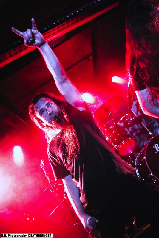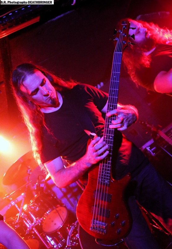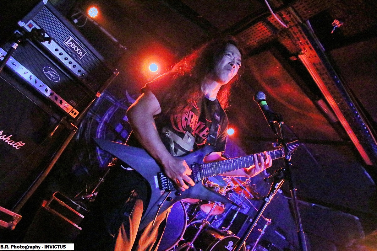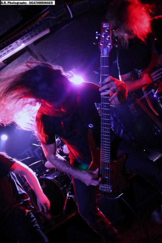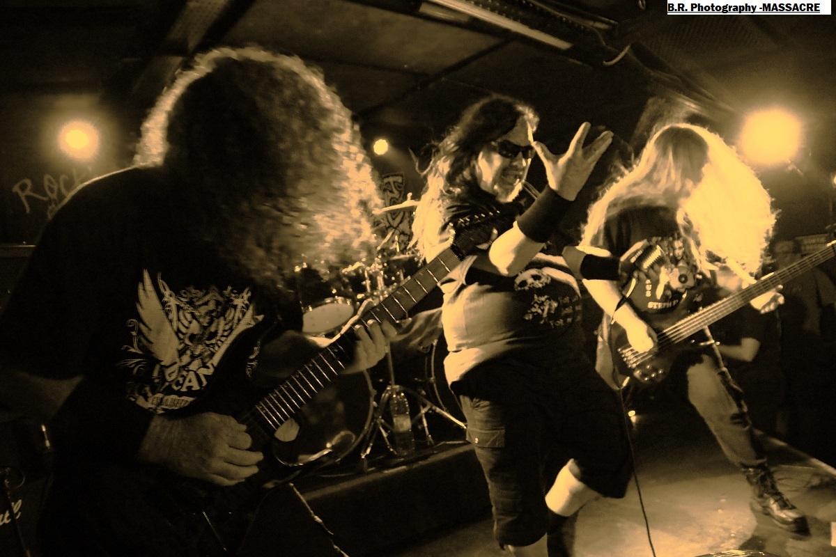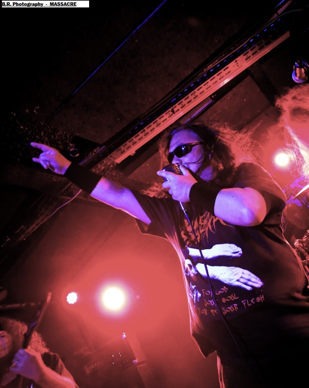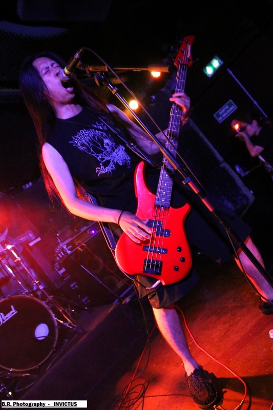 Alors, inutile de vous dire que les voûtes de notre club préféré ont tremblé sous les coups de boutoirs de ces quatre groupes de metal-de-la-mort-qui-tue dans un registre death old-school bien entendu ! Il ne fallait pas être en retard ce soir car dès 19 heures quinze nos amis d'INVICTUS, trio de pays du soleil levant, ont ouvert la soirée avec perte et fracas et placé la barre déjà bien haute d'entrée de jeu. Cette jeune formation nipponne ne fait pas dans la dentelle et malgré sa création relativement récente (2015)elle nous prouve ce soir qu\'elle en a sous la semelle comme l\'on dit communément dans ce registre mortuaire qui nous intéresse. Mêlant thrash et death en brin technique à l\'aide de riffs et soli qui déchirent et d\'une rythmique sans compromis, ils nous ont laissé un goût de « reviens-y », bravo les gars vous revenez donc quand vous voulez, on aime ! Avec les Biélorusses de DEATHBRINGER nous abordons une autre facette du death-metal. Un death un peu plus calme grâce aux dérives progressives à la guitare. Mais ne vous y trompez pas la brutalité vocale est au rendez-vous et des parties bien enlevées remettent la pendule à l\'heure des envois musclés de ce groupe somme toute vétéran dans le style. En effet ils remonte au créneau avec la sortie d\'un nouvel album 15 ans après leur premier enregistrement. Mais la tension dans le public n\'est pas encore au top niveau et il faudra attendre la venue de la prochaine formation pour voir enfin le pit se déchaîner. Cette suite agitée donc sera l’œuvre des Américains de MASSACRE. Un groupe déjà ancien dans le style qui ne m\'avait pas fait un gros effet en live il y a une dizaine d\'année à l\'Usine de Genève en Suisse. Mais ce soir Kam Lee, ses vocaux remarquables et ses acolytes furieux, nous ont cloué contre les voûtes du Rock n\'Eat à ma grande surprise. Alors le public s\'est déchaîné, comment faire autrement avec ces vétérans restés fidèles au son old-school brut de décoffrage pour une extrême efficacité avec cerise sur le cercueil une chorégraphie scénique imparable, quelle claque mes amis, les murs du sous-sol du Quai Arloing s\'en souviennent encore, ce fus donc une incroyable performance ! La tête d\'affiche de ce soir sera bien évidemment les Américains de MALEVOLENT CREATION groupe culte originaire au départ de New-York puis installé ensuite en Floride faisant partie des pionniers du deth-metal d\'outre atlantique et formé en 1987. Bien sûr au fil des ans, des nombreux enregistrements et des tournées incessantes le line-up a souvent été remanié et a donc subit nombre de changement de line-up c\'est un fait, leurs compositions restant cependant gravée dans notre mémoire. Mais ce soir Malevolent Creation se présentera sous la forme d\'un trio sans le guitariste Phil Fasciana, membre fondateur du groupe quia été hospitalisé le 17 Juillet dernier en urgence.. Le trio donc sera emmené par le chanteur/bassiste Jesse Jolly qui aura du mal à faire remonter la « mayonnaise » morbide au début du set. Mais au fil des titres sa présence vocale et instrumentale vont contribuer à relancer l\'agitation du public devant la scène. Alors, cette formation réduite nous a quand même fait apprécier nombre de brûlots extraits de leur imposante discographie comme par exemple « Eve of the Apocalypse », « Alliance or War » et autre « Blood Brothers ». Pourtant malgré une prestation sans faute un arrière-goût de « manque » s\'est fait sentir par les fans ultimes, mais bon, ne crachons pas dans la soupe du metal morbide, ce fus quand même très bien ! Merci encore une fois à Sounds Like Hell Production pour l\'accréditation accordée à Pavillon666, merci à tous les musiciens qui ont enflammé un Rock n\'Eat que nous remercions également pour son accueil toujours au top et bien-entendu merci au public qui a remplit les lieux ce soir c\'était inévitable avec une affiche pareille ! |