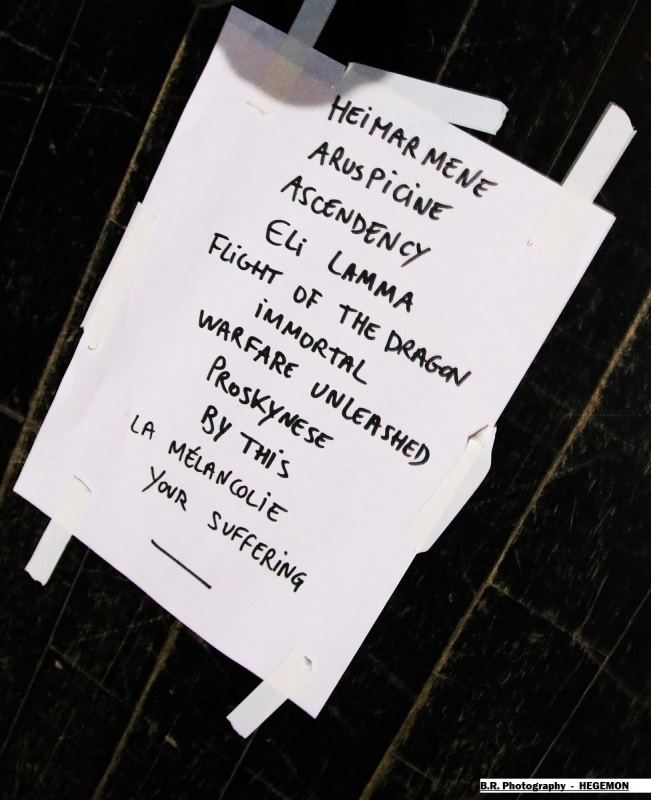 Cette soirée verra les prestations remarquables, il faut le dire, de HEGEMON, LES CHANTS DE NIHIL, DECLINE OF THE I et CHIAROSCVRO, 4 formations marquantes de la scène black-metal frenchie.
