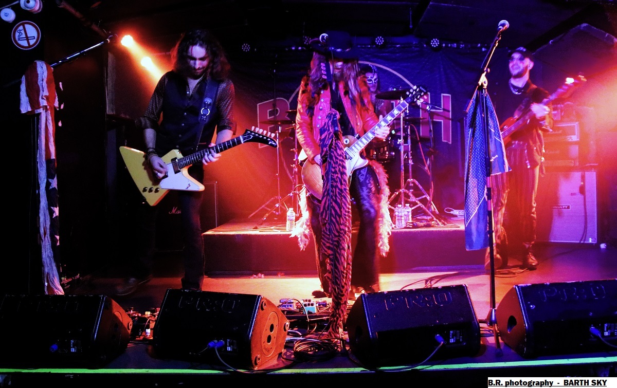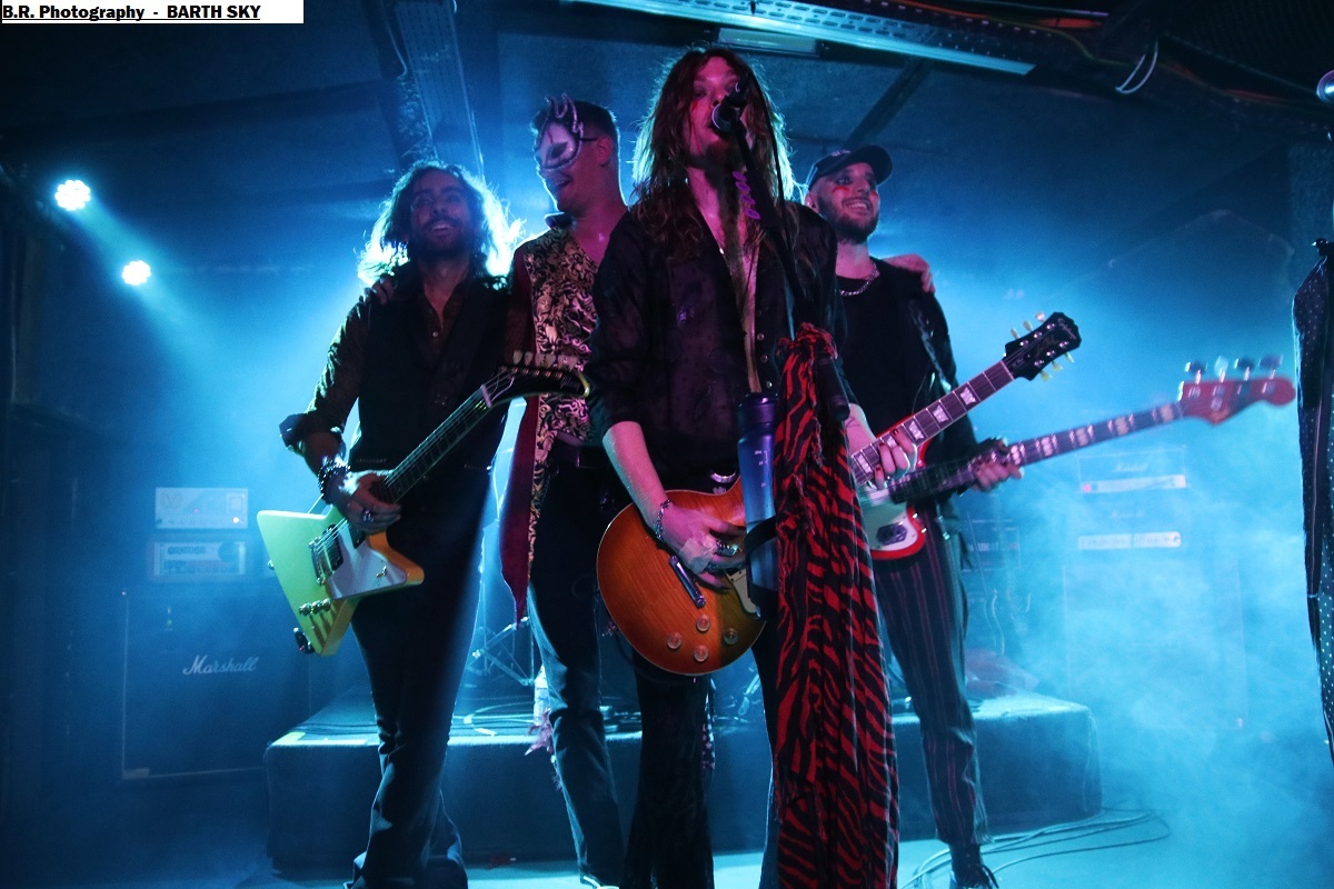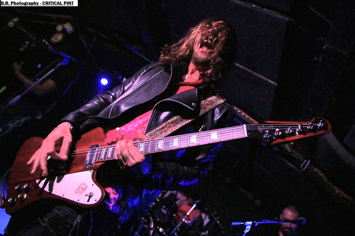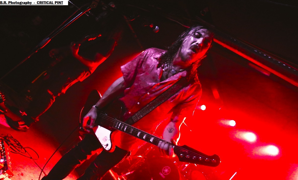 Ces trois formations aiment le rock, le blues, parfois mélo, parfois hard, mais toujours fidèle aux racines du genre pour notre plus grand plaisir. Et une folle ambiance de fut pas démentie tout au long de cette nuit sympathique en diable ! PACÔME ROTONDO accompagné d'un bassiste, d'un batteur et d'un claviériste va nous faire goûter à son blues, son rock, un rock qui tâche, qui reste collé à nos cages à miel et qui tutoie une certaine émotion au travers de sa voix parfois rugueuse et de ses 6 cordes qu'il fait parler tour à tour. Il nous fait voyager aussi dans le temps avec des reprises de Jimi Hendrix, « Hey Joe » et « Foxy Lady » de 1967 qu'il s'approprie en y rajoutant son doigté aventureux. Bref, Pacôme Rotondo nous a comblé à l'aide de riffs et de soli dans une ambiance hors du temps et de l'espace, ce fus excellent tout simplement ! Les Savoyards de CRITICAL PINT ont amené ce soir dans leurs valises leur fan base qui va reprendre en chœur les paroles de leurs titres. Ces titres, ces compositions sont extraites de leur EP « Just a Drop » et de leur premier Lp « Thirst of All » de 2023. Mais au fait, que nous propose ce groupe de Chambéry ? Eh bien ce groupe sait nous proposer une certaine cuisine appelée loud rock entre rock, blues et stoner. Résultat nous dégustons un plat consistant et varié au fil des inspirations de chacun. Bien sûr Critical Pint en live ça sonne comme il faut, mais après les avoir vu sur scène à plusieurs reprises j’émets une certaine réticence vis à vis d 'un petit manque de lourdeur, il fallait le dire. Mais qu'à cela ne tienne, ce groupe va sûrement s 'endurcir au fil du temps, nous le sentons motivé et il sait créer de bonne ambiances lors de ses prestations, à suivre donc ! Et puis, et puis, c'est maintenant au tour du guitariste BARTH SKY guitariste dans plusieurs groupes de venir nous interpeller avec son propre projet « Rock n'Roll Cabaret » inspiré par le Sunset Trip des années 80 qui revisite un certain passé des rock stars de l'époque. Alors en live, Barth Sky c'est tout un poème, un poème binaire aux dérapages « glamouze » afin de nous faire plonger en apnée dans cette période « girls girls girls » de Môtley Crûe par exemple. Et effectivement le groupe invite sur scène les « girls » et notre guitar hero va aussi faire « communier » ceux du premier rang en déversant du « Jack » dans les gosiers des fans aux anges, au diable pardon ! Alors ce soir Barth Sky nous a rassasié de rock n'roll en musique mais aussi en attitude et ce fus incroyablement génial , amen ! Merci aux organisateurs pour cette soirée endiablée. Merci à tous les musiciens qui nous ont fait goûter ,à leur binaire en folie. Et bien entendu merci au Rock n'Eat pour son accueil indéfectible. |