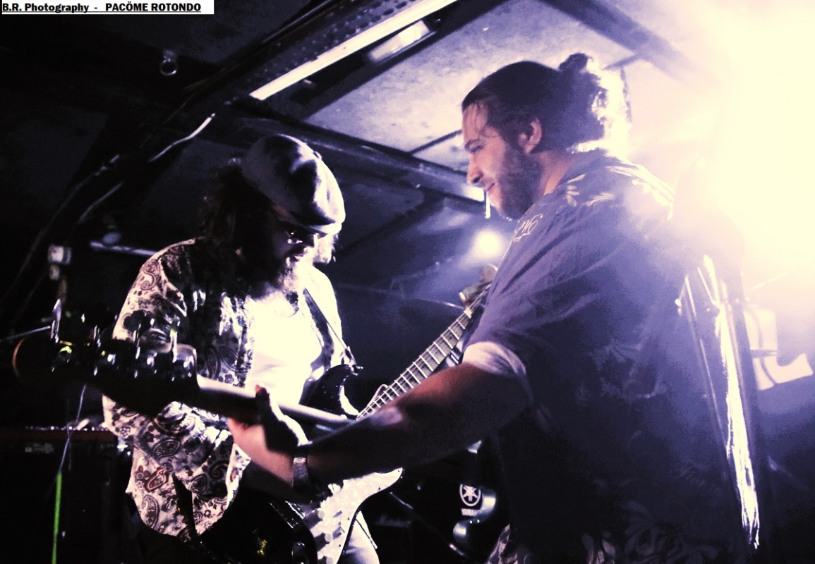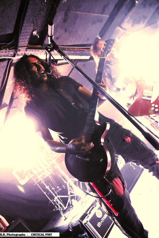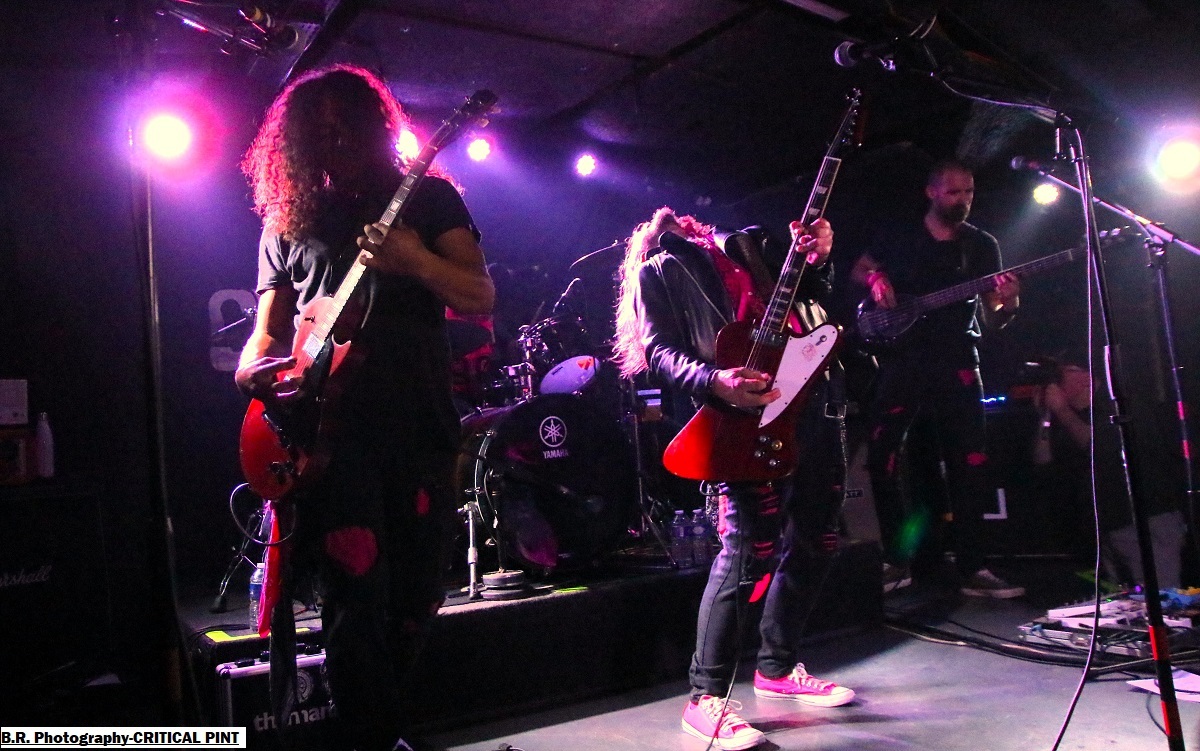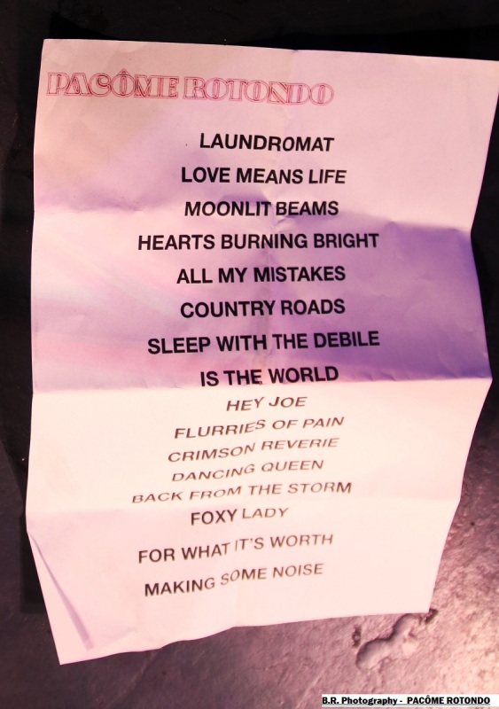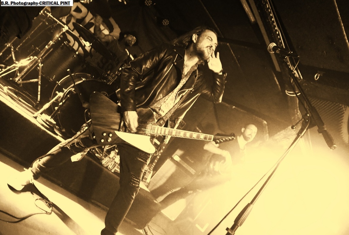 Ces trois formations aiment le rock, le blues, parfois mélo, parfois hard, mais toujours fidèle aux racines du genre pour notre plus grand plaisir. Et une folle ambiance de fut pas démentie tout au long de cette nuit sympathique en diable ! PACÔME ROTONDO accompagné d'un bassiste, d'un batteur et d'un claviériste va nous faire goûter à son blues, son rock, un rock qui tâche, qui reste collé à nos cages à miel et qui tutoie une certaine émotion au travers de sa voix parfois rugueuse et de ses 6 cordes qu'il fait parler tour à tour. Il nous fait voyager aussi dans le temps avec des reprises de Jimi Hendrix, « Hey Joe » et « Foxy Lady » de 1967 qu'il s'approprie en y rajoutant son doigté aventureux. Bref, Pacôme Rotondo nous a comblé à l'aide de riffs et de soli dans une ambiance hors du temps et de l'espace, ce fus excellent tout simplement ! Les Savoyards de CRITICAL PINT ont amené ce soir dans leurs valises leur fan base qui va reprendre en chœur les paroles de leurs titres. Ces titres, ces compositions sont extraites de leur EP « Just a Drop » et de leur premier Lp « Thirst of All » de 2023. Mais au fait, que nous propose ce groupe de Chambéry ? Eh bien ce groupe sait nous proposer une certaine cuisine appelée loud rock entre rock, blues et stoner. Résultat nous dégustons un plat consistant et varié au fil des inspirations de chacun. Bien sûr Critical Pint en live ça sonne comme il faut, mais après les avoir vu sur scène à plusieurs reprises j’émets une certaine réticence vis à vis d 'un petit manque de lourdeur, il fallait le dire. Mais qu'à cela ne tienne, ce groupe va sûrement s 'endurcir au fil du temps, nous le sentons motivé et il sait créer de bonne ambiances lors de ses prestations, à suivre donc ! Et puis, et puis, c'est maintenant au tour du guitariste BARTH SKY guitariste dans plusieurs groupes de venir nous interpeller avec son propre projet « Rock n'Roll Cabaret » inspiré par le Sunset Trip des années 80 qui revisite un certain passé des rock stars de l'époque. Alors en live, Barth Sky c'est tout un poème, un poème binaire aux dérapages « glamouze » afin de nous faire plonger en apnée dans cette période « girls girls girls » de Môtley Crûe par exemple. Et effectivement le groupe invite sur scène les « girls » et notre guitar hero va aussi faire « communier » ceux du premier rang en déversant du « Jack » dans les gosiers des fans aux anges, au diable pardon ! Alors ce soir Barth Sky nous a rassasié de rock n'roll en musique mais aussi en attitude et ce fus incroyablement génial , amen ! Merci aux organisateurs pour cette soirée endiablée. Merci à tous les musiciens qui nous ont fait goûter ,à leur binaire en folie. Et bien entendu merci au Rock n'Eat pour son accueil indéfectible. |