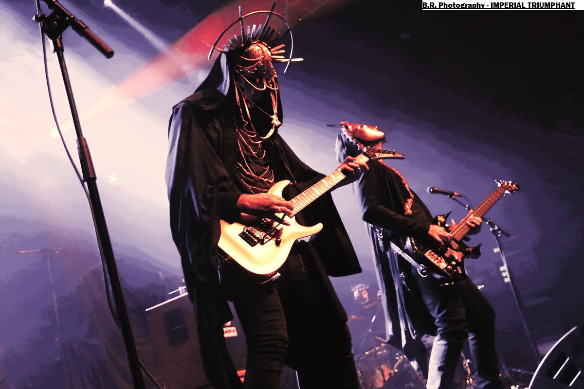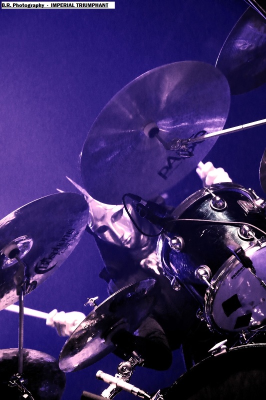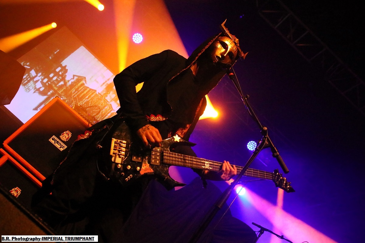 Allez, dès 19heures la soirée démarre avec du black metal envoyé par les New-Yorkais d'IMPERIAL TRIUMPHANT. Vus il y a longtemps dans une salle relativement modeste à Lyon et l'été dernier au Sylak Open Air, j'étais impatient de les revoir encore une fois ce groupe m'ayant donc fortement interpellé précédemment.