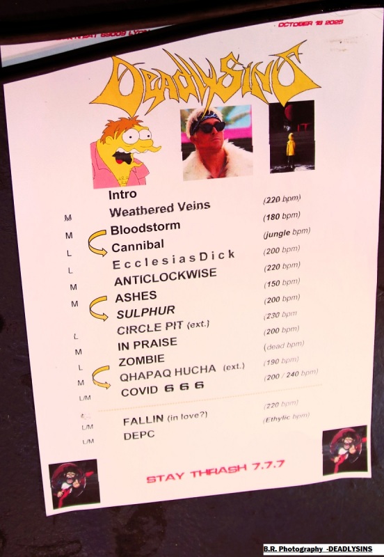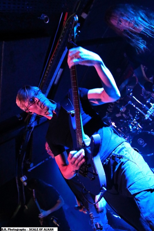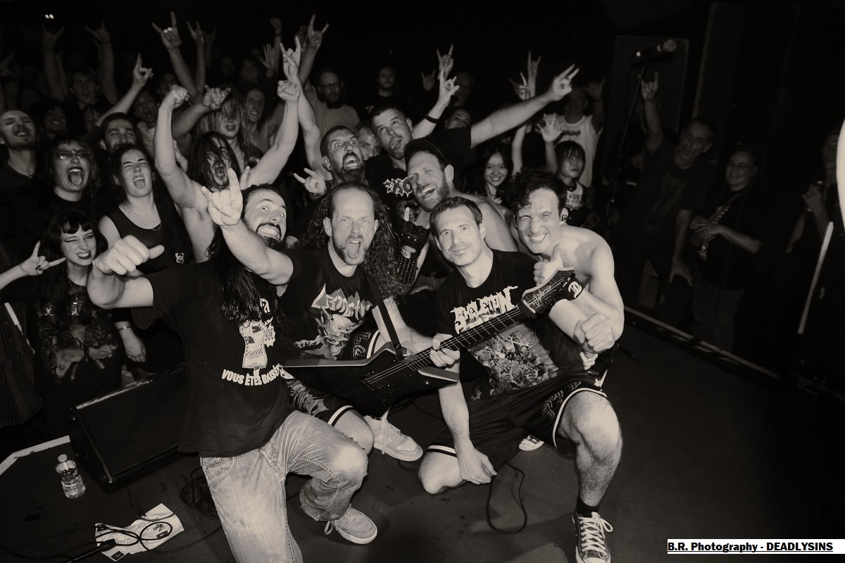 Venant de la région d'Annecy (74) SCALE OF ALKAN vient dès 20heures 30 nous interpeller à l'aide d'un speed-heavy metal aux dérapages prog. Ce soir nous ne seront pas « Infestés » ni « Gravé dans le Brouillard » mais grave intéressés par les envois de cette formation dont les membres (ex-Alkemyst) sont originaires majoritairement de la « Hiaute » vous m'aurez comprit. Inutile de résister à la voix puissante du chanteur et aux envois guitaristiques ciselés soutenus par un duo basse/batterie bien brutal et aventureux. Leur speed/heavy aux déviances mélodiques est très cohérent et le public venu en nombre ce soir est aux anges (au diable pardon). Excellente prestation dans le style tout simplement on aime. Les Stéphanois d'HEAVYLUTION prennent la suite avec leur heavy très lourd (pléonasme?) teinté de thrash à l'envi. Avec sous leurs bras leur nouvel album « The Cycle » ils comptent bien mettre le feu dans les sous-sols des quais de Saône. Une fan-base et un public bien accroché à leurs envois vont donc s'agiter sans problème devant la scène, ça promet pour cette soirée ! Et là encore, une voix qui interpelle proposée par un chanteur bien entouré de musiciens qui « bastonnent » sans faiblir mêlant leur power heavy au thrash qui écorche nos « cages à miel ». Heavylution remet les pendules à l'heure dans cette scène frenchie en pleine ébullition depuis quelques temps. Excellente prestation donc qui valait le « cou » bien évidemment, on s'en souviendra. Remettez le couvert en live quand vous voulez on sera là ! Place maintenant au « pure fuckin' old school moshing » avec les thrashers fous de DEADLYSINS remontés comme des coucous ce soir, et nous allons déguster dans tous les sens du terme. Avec leur dernier album en date interpellé « Age of Revelation » ils font un retour fracassant sur scène et dès le premier titre « Weathered Veins » tout part en « live », fans aplatis devant la scène, pied de micro et retours en déplacement, garez-vous ce soir ça va saigner et comme dirait notre ami Julien de Benighted, il va y avoir de la cervelle contre les murs ! Alors c'est parti pour un set de folie avec ensuite d es dérapages incontrôlés (mais où est passée ma godasse?), des slams non-stop et des boissons houblonnées qui viennent provoquer sur scène une coupure de lumière, la fée électricité à donc disjoncté ! Un peu de thrash dans le noir pendant quelques instants, mais tout repart bien vite, ouf ! Alors « stay thrash, stay brutal, stay Deadly 777 » ce soir nous avons conjugué tous ces mots. Pour terminer voici un « Covid666 » et deux rappels, emballez c'est pesé, le public fut simplement « thrashé » c'est sans appel. ! Alors concert d'anthologie comme dit plus haut ? Oui sûrement , quelle « quecla dans la chetron » comme dirait mon ami le punk déjanté, aargh ! Merci, merci à tous les organisateurs et musiciens, à l'équipe du Rock n'Eat pour cette soirée metal follement déjantée, amen ! |
