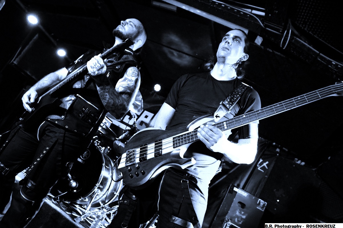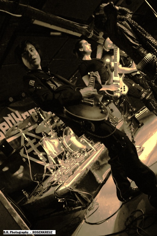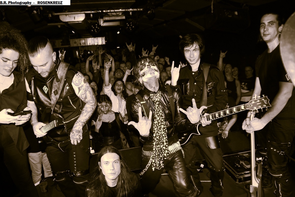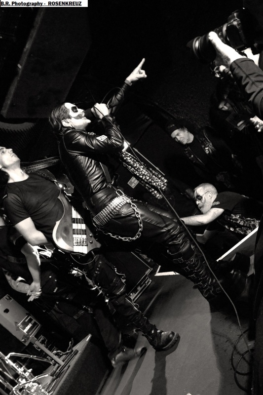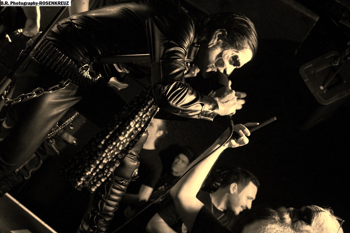 Et puis pour terminer la soirée, un concours dark sera ouvert et l'after party sera assurée par le DJ LE CHIFFRE (Set Darkwave/Goth/Indus). C'est le trio DIVINE SHADE qui ouvre le petit bal cold wave, rock industriel devant un public déjà bien présent, un public qui au fil des heures va remplir copieusement les sous-sols du quai Arloing. Pour la petite (grande) histoire, Divine Shade a été choisit par Gary Numan pour sa tournée UK 2022 et puis le trio a ouvert aussi pour New Model Army et The Mission sans oublier The Sisters of Mercy. Alors là ce soir dans l’intimité du RNE, Divine Shade va nous interpeller grave avec sa démonstration sombre mais parfois dotée d'une certaine violence d'un rock electro-goth fleurant bon les 90's. Nous avons aimé et même plus, c'est vous dire ! MELAINYA B. va ensuite « crever l'écran » au sens propre comme au sens figuré en nous offrant une performance visuelle où le corps va se mouvoir entre ténèbres et bougies allumées nous procurant une certaine émotion dans des mouvances esthétiques voire fétichistes. Après s'être produite notamment avec le groupe de black-metal Seth et lors de nombreux événements Européens alternatif, goth, dark et metal (Hellfest) Mélainya ce soir nous fait part d'un certain art, son art, pour une prestation puissante, rituelle et sans tabou, et ce fus magique dans cette nuit Lyonnaise. Au tour maintenant de ROSENKREUZ de nous interpeller à l'aide de son metal/indus froid, martial et bien souvent envoûtant. Le RNE est maintenant plein comme un œuf et la fan base est bien présente afin de « fêter » le retour tonitruant du gang du Kommandant Herr Kazett et de ses sbires pour une cérémonie aux rythmes puissant soutenus par des machines mais laissant place bien entendu aux guitares tranchantes, basse/batterie plombée pour les beat techno. Avec un look d'enfer où le cuir et les chaînes et maquillage sont omniprésents le quintette futuriste nous dévoilera entre autres des titres qui figureront sur le nouvel album à venir, mais pas que ! En dernier rappel leur titre phare « Crystal City » viendra mettre un terme à une prestation remarquée voire remarquable qui propulse cette entité métallique en diable vers de nouveaux horizons. Excellente prestation ce soir dans une folle ambiance, nous avons tout simplement adoré, amen ! Merci aux organisateurs pour cette nuit pas comme les autres où les acteurs de la scène goth/indus nous ont invité à apprécier une certaine culture underground. Et bien entendu merci au Rock n'Eat, lieu incontournable rock/metal de Lyon. |