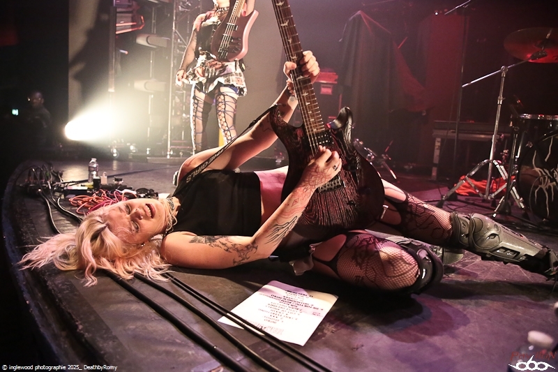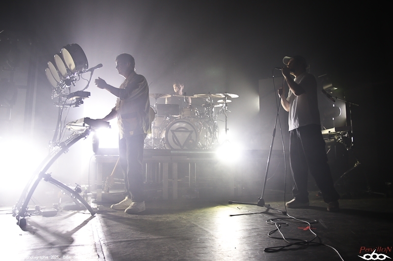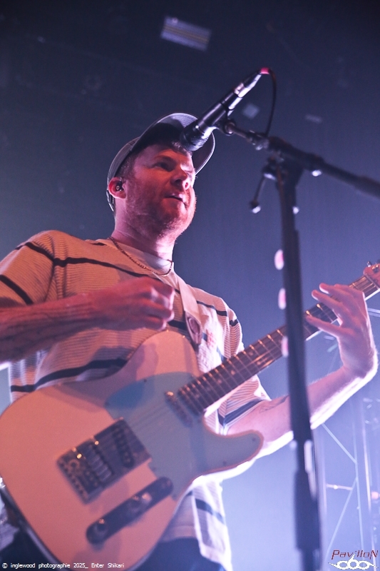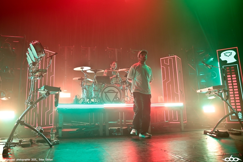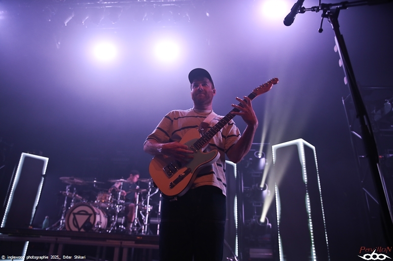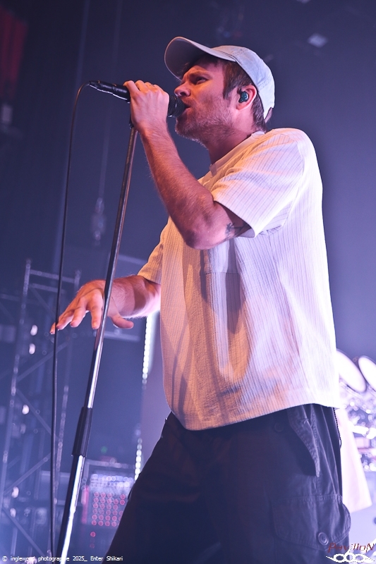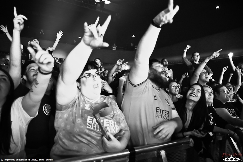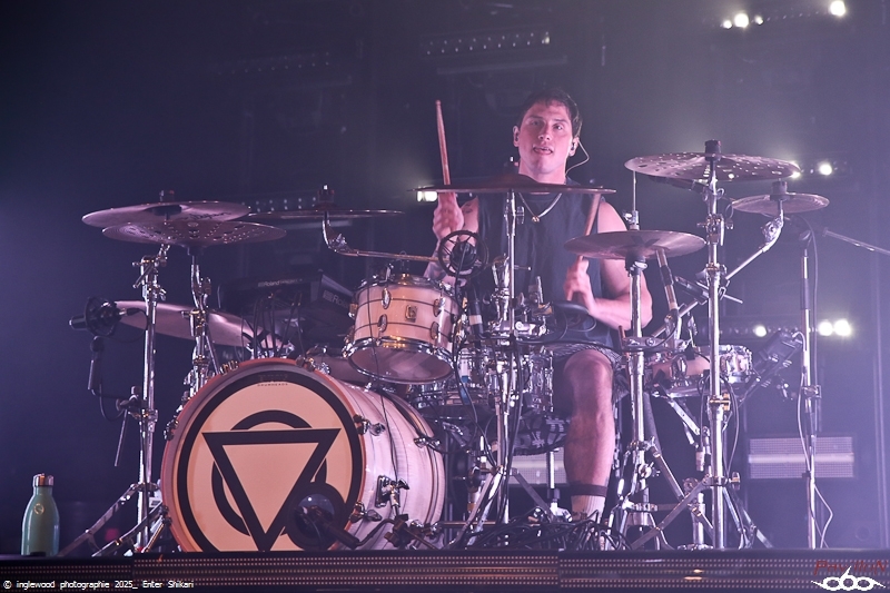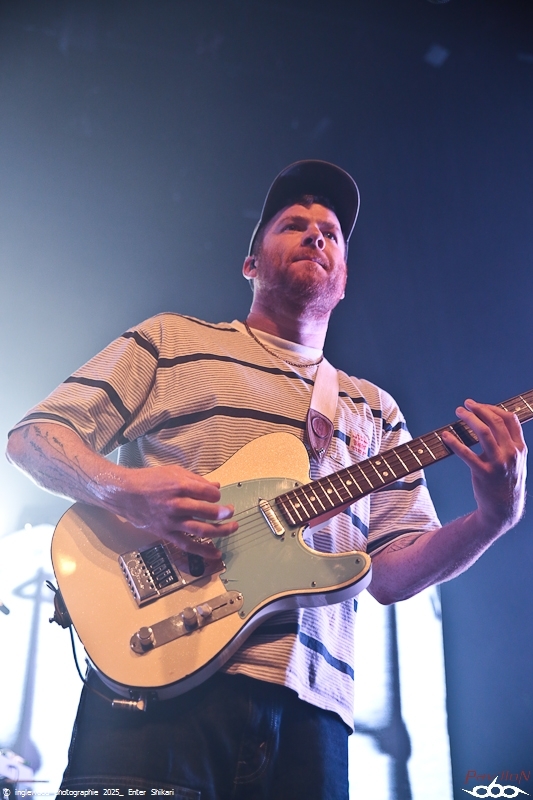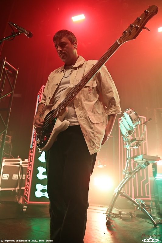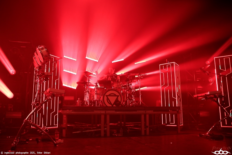 Salle pleine, tension palpable, public déjà prêt à décoller avant même que les lumières ne tombent. Paris voulait vibrer, ce soir. En ouverture, DeathbyRomy plante son univers sombre et électrique. Voix glacée, beats lourds, esthétique goth-pop parfaitement assumée. Le public, encore sage, se laisse surprendre. Une ambiance léchée, presque cinématographique — exactement ce qu’il fallait pour faire monter la pression sans l’évacuer trop tôt. 21h passées. Noir complet. Une nappe électronique s’étend, un battement résonne, et Enter Shikari surgit comme une décharge. Rou Reynolds, pile humaine, bondit d’un bout à l’autre de la scène. Le Bataclan rugit. Le groupe enchaîne les titres, piochant dans toute sa discographie : bangers, moments plus pop, éclats hardcore… La salle suit sans broncher, happée par l’énergie constante. Parce que Shikari, ce ne sont pas que des blasts et des synthés hystériques. Au milieu du tumulte, le groupe glisse des passages plus fragiles. Le public baisse d’un cran, écoute, se recentre. Puis le groupe repart en mode collision frontale. Dans cette salle mythique, leur son prend une dimension presque physique. Les lumières dessinent des tunnels, les basses sculptent l’air, et le public joue le jeu à fond : pits tournoyants, sauts synchronisés, chants à couper la clim. Pas un temps mort. Pas un faux pas. Les années passent, mais Enter Shikari reste l’un des groupes les plus solides du circuit. Ça se voit. Ça s’entend. Ça se ressent dans les tibias. Le set se termine comme il a commencé : sans compromis. Derniers refrains scandés, dernières explosions, derniers frissons. La salle sort en sueur, ébouriffée, le sourire vissé au visage. Une certitude circule en continu sur le trottoir du boulevard Voltaire : Shikari n’est pas venu jouer. Shikari est venu marquer. |