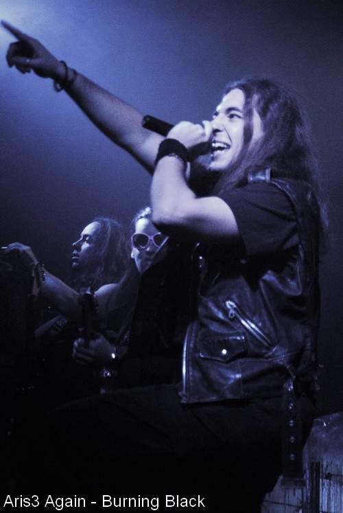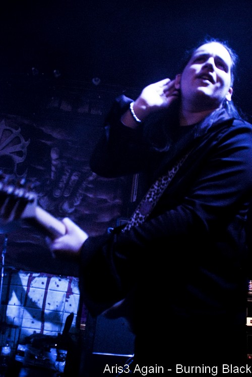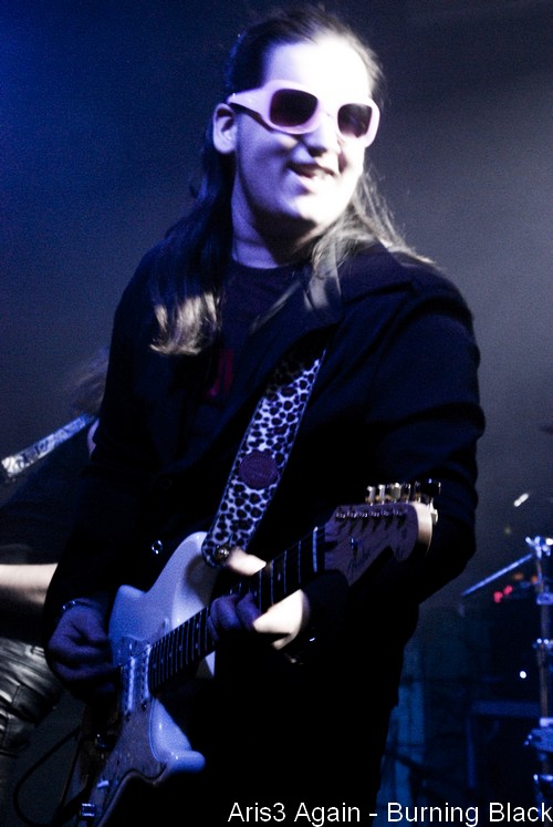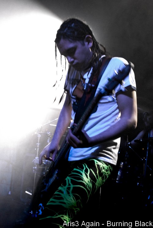 Lorsque je pénètre dans la salle, le premier combo a déjà entamé son set, alors qu'une bonne partie du public fait encore la queue dehors. Personne ne connaît le nom de ce groupe mystérieux, qui n'est inscrit nulle part. Cette première partie surprise est en vérité Burning Black, un combo italien en pleine promotion de son dernier opus en date, "MechanicHell". Après quelques soucis de line up, une signature chez Limb Music et une tournée en compagnie de Circle II Circle et de Manticora, le groupe se retrouve donc en ouverture de Lordi pour cette série de dates. Musicalement, Burning Black se situe dans un garage rock assez classique et pas vraiment original, et bien que les musiciens prennent du plaisir à se produire sur scène, très peu de gens semblent accrocher à leurs morceaux. Affublés d'accessoires fluo, les membres de la formation font pourtant des efforts pour séduire leur public, mais le peu de charisme du chanteur rabaisse la performance du groupe, qui restera au final très moyenne. Gageons qu'au moins la moitié des personnes présentes ce soir-là ignore encore le nom de cette première partie pas vraiment convaincante.