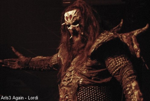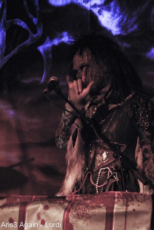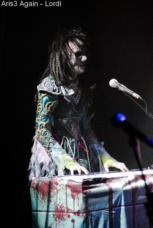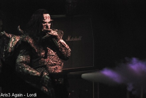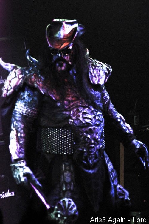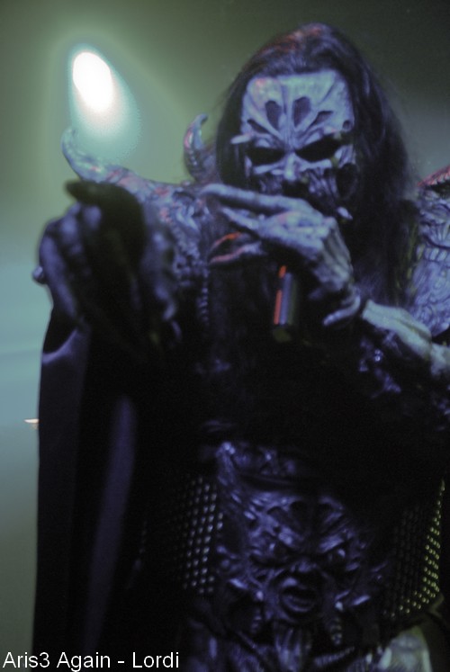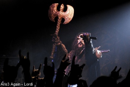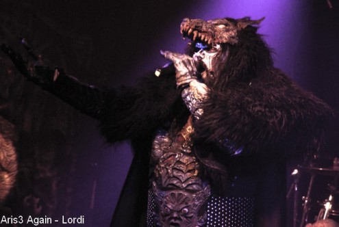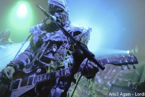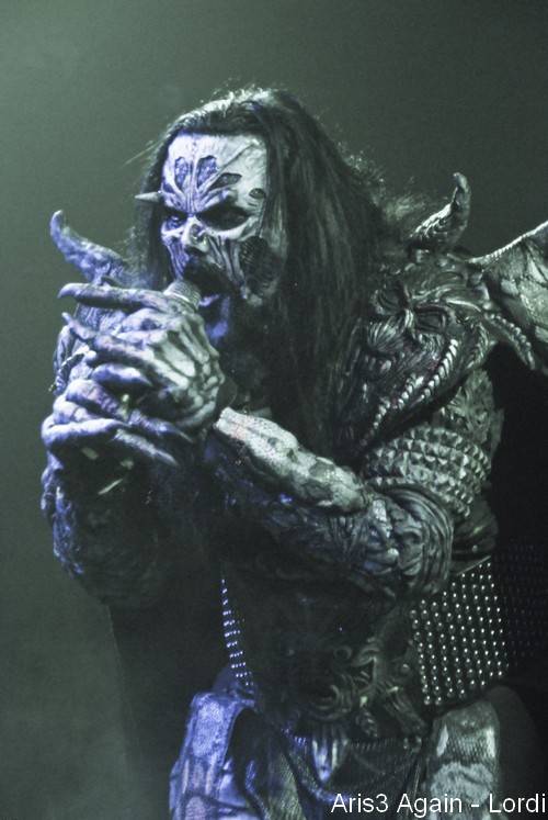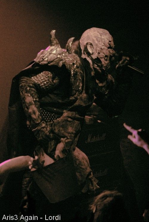 Le moment que tous les présents de ce soir attendent est enfin arrivé, et les techniciens se dépêchent d'installer les derniers préparatifs avant la venue des membres de Lordi sur scène. Rien n'est laissé au hasard et le décor a été soigneusement pensé, avec notamment de nombreuses petites babioles devant la batterie. Après le succès de "The Arockalypse" et un "Deadache" passé beaucoup plus inaperçu, nos monstres finlandais sont de retour avec un nouvel album, "Babez From Breakfast". L'impatience monte dans la fosse, et la longue intro plongeant toute la salle dans le noir ne fait que renforcer les cris des fans. Les monstres arrivent un à un sur les planches, entamant le titre éponyme de leur dernier opus. A l'arrivée de Tomi Putaansuu, aka Mr. Lordi, chanteur du combo, les premiers rangs se compressent un peu plus, et chantent en chœur les refrains avec lui. Au niveau de la set list, le groupe tape allègrement dans presque tous ses albums, et bien entendu particulièrement dans son petit dernier. Seul le premier opus, "Bend Over & Pray the Lord" est laissé dans les cartons, peut-être un peu trop old school comparé aux titres désormais composés par les Lordi. "Get Heavy", deuxième album du combo datant de 2002, est en tout cas mis à l'honneur, avec notamment les très efficaces "Dynamite Tonite" et "Last Kiss Goodbye". Mr. Lordi se montre très communicatif avec son public, et les mises en scène s'enchaînent devant des fans conquis. Danse macabre avec une poupée, crâne fumant brandi par le chanteur durant "All off the Wedding" et même solo de piano par Awa, claviériste féminine toute aussi monstrueuse que ses camarades, le groupe a visiblement bien préparé sa représentation. Le leader est bien entendu le premier à jouer son rôle de monstre, et sort un bazooka, arrosant la fosse sur "Hate at First Sight", puis porte tour à tour une cape de loup sur son hit "Bringing Back the Balls to Rock" et des ailes tel un ange déchu sur "Devil is a Loser". Si les accessoires sont peut-être un peu trop nombreux, les titres sont en tout cas très efficaces et énergiques, et les extraits des différents albums se suivent à la perfection, démontrant une grande homogénéité de la musique de Lordi au fil des années. Le rappel après la sortie de scène est très attendu, et c'est sans surprise que les monstres remontent sur les planches sur un "Hard Rock Hallelujah" repris en chœur par une fosse ravie, effectué par un Mr. Lordi brandissant une hache. Le set s'achève après un "Would You Love a Monsterman" tout aussi apprécié par le public, qui applaudit longuement le groupe. Après un tel show, on en a certes plein les yeux, mais on en vient à se demander si l'on a réellement passé un si bon moment. Alors oui, c'est efficace et très carré, rien à dire sur tout cela. Mais il manque un grain de folie et une spontanéité totalement absents au programme. On aura tout de même passé une soirée agréable, bien que le côté totalement contrôlé de la prestation de Lordi ternisse un peu le tout. Il est dommage d'assister à un show où tout est parfaitement orchestré et chronométré à la milliseconde près, non ?