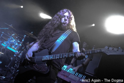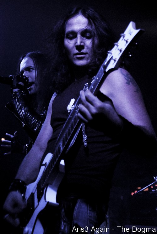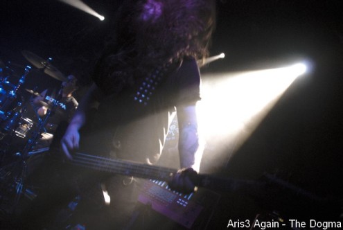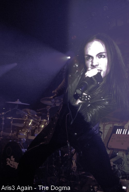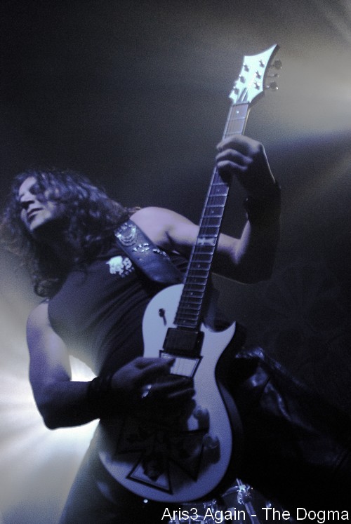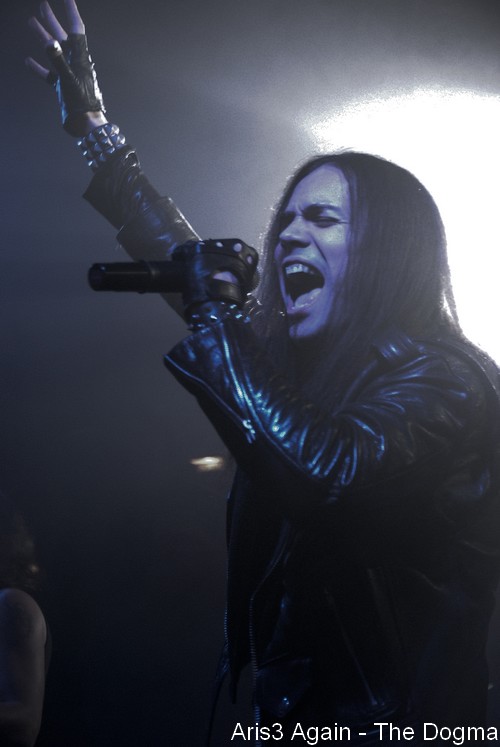 La soirée s'enchaîne sans trop de transition avec le groupe suivant, a priori davantage connu et apprécié par le public, The Dogma. Le style musical du combo n'a pas non plus beaucoup à voir avec celui de Lordi, puisque l'on a cette fois affaire à un heavy progressif plutôt bien ficelé. Forts de la sortie de leur dernière galette en date, "Black Widow", les cinq Italiens débarquent sur scène sûrs d'eux et prêts à en découdre. Contrairement à la formation précédente, le chanteur des Dogma, Daniele Santori, est clairement l'un des points forts du groupe, et s'impose en leader grâce à sa très belle voix et son charisme. L'accent est mis, comme on peut s'y attendre, sur le dernier album en date de la petite troupe, mais les deux premiers disques ne sont pas passés sous silence pour autant, et les amateurs du groupe semblent prendre beaucoup de plaisir à entendre les différents morceaux réussir l'épreuve du live avec succès. Si le style dans lequel les Dogma évoluent n'est pas vraiment ma tasse à thé, il faut admettre que les Italiens proposent de solides compositions et disposent d'une bonne présence sur scène. Aidés par un sympathique jeu de lumière et un son globalement bon, les membres du combo offrent au public une première partie digne de ce nom et réussissent à séduire les fans des monstres finlandais. Voici donc une ouverture efficace, peut-être un petit peu trop longue, mais au final très agréable. Pour les fans du genre, je conçois que The Dogma devait être une belle découverte live. Pour ma part, cela restera quoi qu'il en soit un bon souvenir.