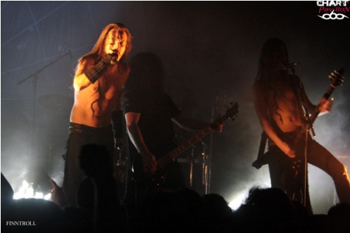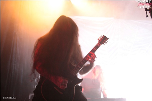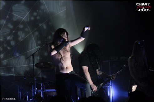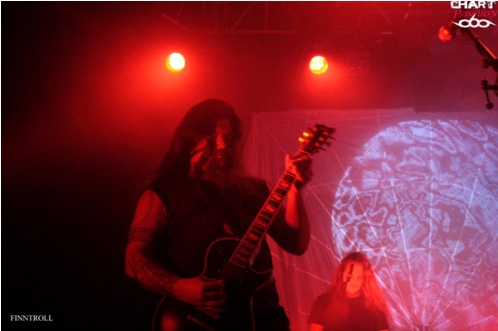 Arrive l’heure fatidique du dernier groupe de la soirée qui n’est autre que FINNTROLL. Le groupe était déjà présent en Mars à Lyon lors du Paganfest et officiait déjà en tête d’affiche. Il est bon de le rappeler car cela explique peut-être pourquoi la soirée de ce soir n’affichait pas complet. Les finnois sont actuellement en tournée pour leur album « Nifelvind ». Avec leur précédent opus « Ur Jordens Djup », le groupe s’est légèrement détaché du pagan metal pour se recentrer sur quelque chose de plus black metal. Le titre d’ouverture du concert « Solsagan » est un bon compromis entre ces deux aspects du groupe. Néanmoins, lorsque le groupe passe d’un style à l’autre lors du concert, c’est comme passer d’un univers à l’autre sans être prévenu et malheureusement ce n’est pas forcément agréable. Certains titres du groupe possède un aspect « festif » qui n’est pas des moindres. On citera pour exemple « Den Frusna Munnen », « Skogens Hämnd » sans oublier l’incontournable « Trollhammaren ». Ces morceaux s’imposent d’eux-mêmes comme des classiques du groupe, voir même du genre. Il ne faut pas oublier que FINNTROLL a majoritairement contribué à populariser le style pagan. Il est maintenant assez déroutant de voir ce groupe se tourner vers le black metal un peu plus classique. On a parfois l’impression d’être assis entre deux chaises. Néanmoins, la prestation est solide et les musiciens sont impeccables. Petit bémol pour Vreth qui n’a pas une présence remarquable au chant. Son attitude est un peu froide comparée à celle d’autres frontmen tels que Sakis ou Varph.
