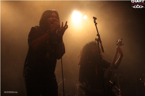 Vous saviez qu’il y avait de très bons groupes de metal extrêmes dans les Maldives ? Et bien, c’était le moment de découvrir un extrait de ce qui se fait là-bas avec NOTHNEGAL. En fait, vous n’allez pas vraiment être dépaysés à l’écoute de leur musique. Le groupe a une démarche musicale tout à fait commune, façon Europe du Nord. Il s’agit d’un bon mélange de black et de death metal avec tout ce que cela inclut en termes de mélodies. NOTHENGAL n’est certes pas très novateur mais sa prestation est à la hauteur de cette affiche. Le groupe est une bonne découverte pour ceux qui sont arrivés un peu en avance. En effet les hostilités ont commencé un peu plus tôt que d’habitude et malheureusement, il y a encore très peu de monde lorsque le groupe débute son set. Espérons que ce ne soit pas une occasion unique de les voir jouer en France.