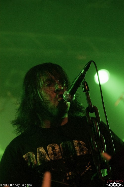 Il ne faudra que quelques instants pour que Dagoba mette le feu sur scène. Car vu l'enchaînement de titres qui compose leur set-list, force est de constater que les Marseillais ne sont pas la pour faire semblant. "There's Blood Offshore" a lancé les hostilités de belle manière mais Dagoba n'aime pas les temps morts et va continuer à nous arroser de brûlot. "The Man You're Not" est la pour en attester, d'ailleurs à ce propos le public est plus à l'aise avec les anciens classiques que les nouveaux. A priori, l'excellent Poseidon n'est pas dans toutes les chaumières... Le combo est visiblement en forme ce soir et ils vont nous faire un étalage de toutes leur capacités durant l'intégralité du show. D'un coté de la scène, Izakar (avec sa gratte illuminée de led) débite des riffs martiaux (The Things Within, Black Smokers) dont lui seul a le secret. Et de l'autre, Werther prend un malin plaisir à faire gronder sa basse et le sol (comme si sa vie en dépendait) sur des titres très puissants comme "Degree Zero" ou "The Man You're Not". Aidé par un public qui commence à devenir de plus en plus chaud bouillant, Dagoba fait monter la pression en créant tour à tour des Wall Of Death ou Circle Pit selon le titre qui correspondait le mieux. Alors certes ça plaît à ceux qui veulent s'amuser mais quelques spectateurs présents dans le public étaient complètement réticents à la pratique... Un effet chaud froid en quelques sortes... Mais qu'importe, les headbangers s'en donnaient à coeur joie ! Ce soir, c'est donc logiquement leur dernier album qui a été mis à l'honneur avec pas moins de six titres tirés de leur dernier opus. Moi qui craignait que les sublimes arrangements qui occupent le CD allait être handicapant pour le live, il n'en est rien ! Ce soir le son est assez bon et toutes les facettes de leur musique se discernent facilement. Les arrangements post apocalyptiques de "Waves Of Doom" ou encore "I Sea Red" sont un régal sur scène ! D'ailleurs à ce propos, ces titres sont très interactifs avec le public car Shawter a énormement sollicité le public tout le long du set mais particulièrement sur ceux-là. "I Sea Red" a été le pic de "bordel" de la soirée. A la demande du groupe, une bonne partie du public a investi la scène comme un seul homme ! Et votre chroniqueur, comme il est tout terrain, a bravé les retours son pour pouvoir gueuler "I Sea Red" au coté de Shawter et profité d'être à proximité de Franky pour examiner de plus près son montrueux-phénomenal-explosif-percutant jeu de batterie. Moment mémorable pour la plupart des chevelus présent sur scène. Retour dans le pit désormais brûlant et c'est non avec une pointe de déception que l'on atteint la fin de la croisière. A peine le temps de se prendre un The Devil's Triangle (qui passe à merveille l'épreuve du live) dans la tête que Dagoba se retire des planches tel un ocean qui vient de faire un véritable tsunami. Mais les Castrais en veulent plus et n'ont pas rendu la pareille au combo marseillais, c'est donc avec des acclamations multiples que Dagoba remonte très vite sur scène. Et c'est avec les désormais classiques, "All Is About Time", "The Things Within" et "The White Guy" que Dagoba finira de faire bouillir un public en effervescence et très heureux du moment qu'il vient de se dérouler sous ses yeux. Etonament, la bande à Shawter est elle aussi heureuse, constatant tout le parcours qu'il ont fait depuis leurs débuts, il y a des sourires qui ne trompent pas. L'échange final entre le public et la formation est très long (et intense), nombreux seront les médiators, baguettes, peaux et poignées de main échangées. Franky caméra au poing filmera la foule tout en serrant lui aussi des mains. Preuve que Dagoba accorde beaucoup d'importance à son public. Et les groupes qui montrent un énorme respect envers leur fans, premièrement c'est beau et deuxièmement (et malheuresement) ça court pas les rues.