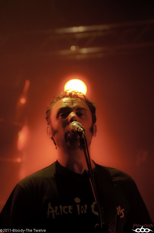 Et pour mettre dans l'ambiance, Dagoba a porté son choix sur The Twelve, groupe local cependant assez éloigné de la musique pratiquée par le combo Marseillais. Le parterre est encore clairsemé mais qu'importe, The Twelve commence son set sans rien demander à personne. Composé de quatre membres, la formation va nous faire (re)découvrir (pour certains) leur rock bien bien burné à la limite du heavy. Avec un chanteur aussi charismatique, The Twelve n'aura pas de mal à attirer l'attention. Bénéficiant d'une voix très puissante qu'il utilisera avec brio, il créera une dynamique sans précédant qui fera headbanguer quelques metalheads au devant dans la fosse. A ses cotés, la machine tourne à plein régime : le guitariste distribu riff sur riff un son heavy à souhait, le tout parsemé de solos bien structurés tandis que derrière les fûts, le batteur distille des partitions assez claires mais bien lourdes quand il le faut. Alors que le bassiste, lui... c'est le vieil hardos du groupe qui n'a rien à envier aux jeunes qui l'entourent. Vous savez, c'est ce genre de personne auquel on a rien à apprendre, celui qui a roulé sa bosse et qui pourrait tout vous apprendre. Véritable force tranquille stoïque et imperturbable derrière sa basse, il usera aussi de sa magnifique voix rauque pour doubler la puissance vocale de son collègue. En plus de régaler l'audience, The Twelve s'éclate eux aussi énormement ! La complicité entre les membres est sans faille et la communication avec le public est très bonne. Le chanteur n'hésitera pas à blaguer à maintes reprises, ce qui amènera une touche de bonne humeur dans ce début de soirée ! C'est après une demi heure de show bien mené, que le quatuor se retire des planches accompagné d'applaudissements nourris, c'était bel et bien mérité.