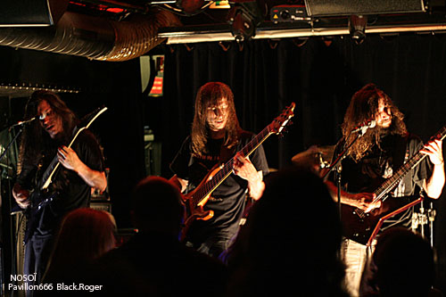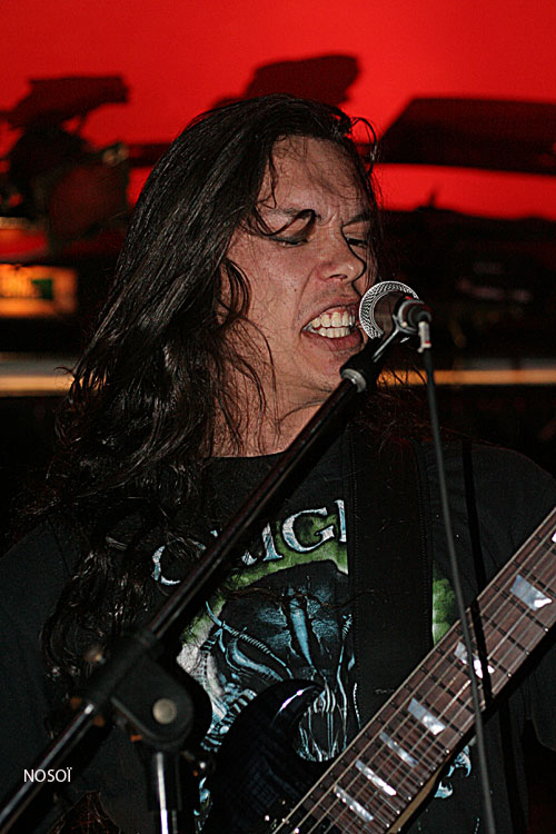 Le « ventre » de la péniche est bien plein lorsque le « jurassic death » de NOSOÏ fait son entrée en scène, une scène bien calibrée pour ce genre de concert il faut le souligner avec tout ce qu’il faut, lights, sono puissante non bridée. Le quatuor venant des Rousses dans le Jura donc, est encore jeune dans la scène death-métal mais sort ses griffes à Lyon dès le départ de son set. Un set bien calibré avec deux grogneurs/guitaristes doués pour la 6 cordes, un bon duo basse-batterie fait le reste. Certes les (bonnes) influences de DECAPITATED, NILE et DYING FETUS sont bien présentes le groupe cherchant encore sa propre voie niveau originalité, mais il a toutes les cartes en main pour y parvenir on n’en doute pas. Leur show bien chaud, fut apprécié par un public de connaisseurs, formation à suivre donc pour la suite de son aventure qui démarre sous de bons auspices, il fallait le souligner.