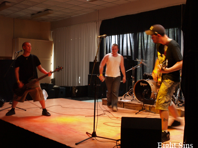 C’est donc le samedi vers 17h30 que commence pour moi le festival, avec déjà pas mal de monde sur place. La pluie ne s’est pas encore montrée, ce qui permet a chacun de bavarder gaiement dans le parc adjacent a la MJC : très bonne ambiance. Quelque temps après, un coup de sirène nous annonce le début du premier concert de la soirée, avec le groupe Eight Sins.