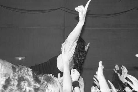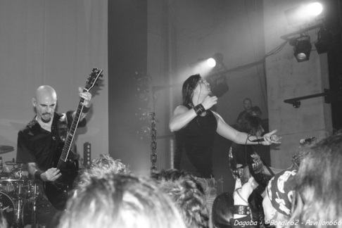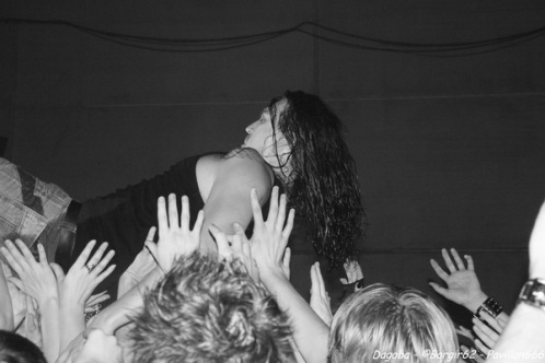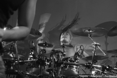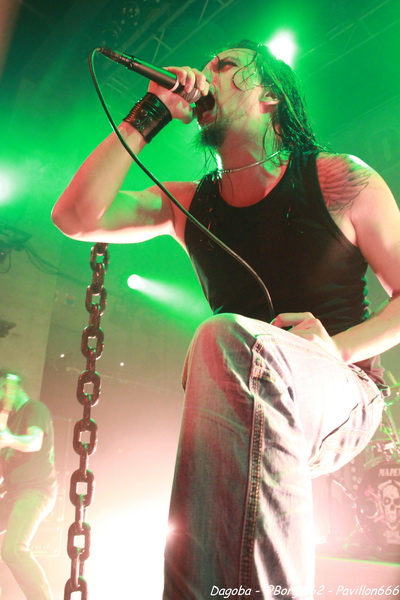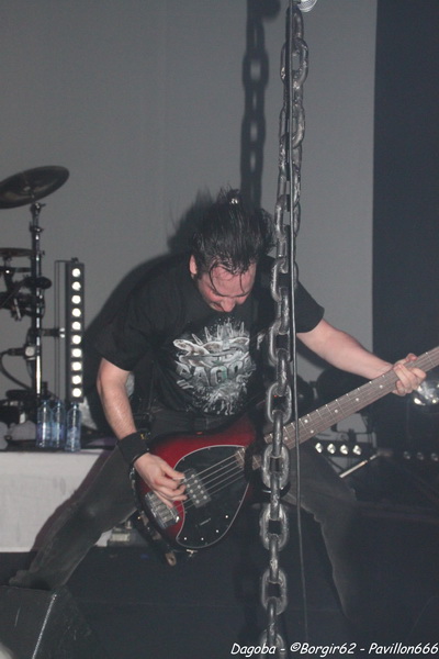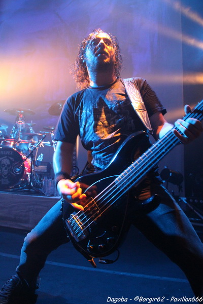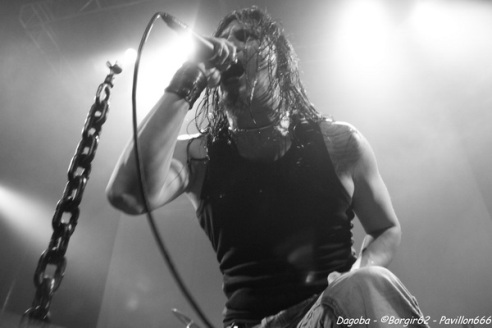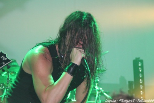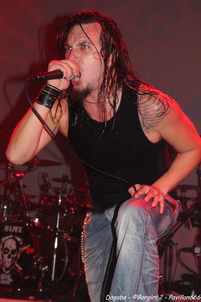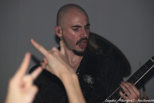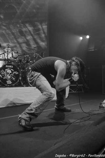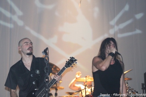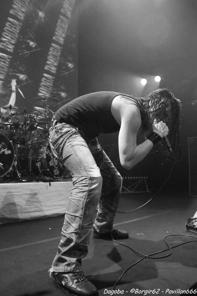 Les lumières s’éteignent, et enfin ils débarquent. Franky pénètre en premier sur scène et a le droit à une ovation. C’est sur l’intro « Dracula » que le quatuor marseillais ouvre ce concert, puis « There’s Blood Offshore » libère un public qui n’attendait que les premières notes pour mettre le feu à cette salle. Dagoba enchaîne les dates suite à la sortie de leur dernier opus « Poseidon », et on aurait pu s’attendre à voir un show basé sur celui-ci, mais Dagoba n’oublie pas ses classiques, et c’est ainsi que l’on enchaîne avec l’exceptionnelle « The Man You’re Not ». L’ambiance monte d’un cran, aussi bien dans le public que sur scène et les pogos se multiplient. Ce n’est pas Black Smokers qui va faire retomber tout ça. Franky et Shawter s’adressent au public afin de faire monter la température dans une salle déjà bien bouillonnante. Le public, réceptif, s’en donne à cœur joie, et les circles pits et wall of death font leur apparition quand les phocéens revisitent leurs deux précédents albums avec des morceaux comme « The Nightfall And All Its Mistakes », « The Fall Of Men » et la toujours très appréciable (et très appréciée) « It’s All About Time ». Puis, retour à Poseidon, avec quatre morceaux dont Degree Zero et I Sea Red, qui terminera le show, dans une ambiance du feu de Dieu. Est-ce cette ambiance qui couvre la voix de Werther ou simplement un micro mal réglé ? En tout cas, Shawter et Izakar sont parfaitement audibles, et en profitent pour haranguer la foule. Shawter se livrera même à un slam, symbole même d’un groupe qui aime son public et qui lui montre.