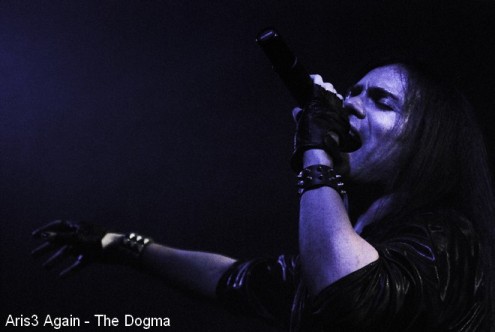 La soirée s'enchaîne sans trop de transition avec le groupe suivant, a priori davantage connu et apprécié par le public, The Dogma. Le style musical du combo n'a pas non plus beaucoup à voir avec celui de Lordi, puisque l'on a cette fois affaire à un heavy progressif plutôt bien ficelé. Forts de la sortie de leur dernière galette en date, "Black Widow", les cinq Italiens débarquent sur scène sûrs d'eux et prêts à en découdre. Contrairement à la formation précédente, le chanteur des Dogma, Daniele Santori, est clairement l'un des points forts du groupe, et s'impose en leader grâce à sa très belle voix et son charisme. L'accent est mis, comme on peut s'y attendre, sur le dernier album en date de la petite troupe, mais les deux premiers disques ne sont pas passés sous silence pour autant, et les amateurs du groupe semblent prendre beaucoup de plaisir à entendre les différents morceaux réussir l'épreuve du live avec succès. Si le style dans lequel les Dogma évoluent n'est pas vraiment ma tasse à thé, il faut admettre que les Italiens proposent de solides compositions et disposent d'une bonne présence sur scène. Aidés par un sympathique jeu de lumière et un son globalement bon, les membres du combo offrent au public une première partie digne de ce nom et réussissent à séduire les fans des monstres finlandais. Voici donc une ouverture efficace, peut-être un petit peu trop longue, mais au final très agréable. Pour les fans du genre, je conçois que The Dogma devait être une belle découverte live. Pour ma part, cela restera quoi qu'il en soit un bon souvenir.