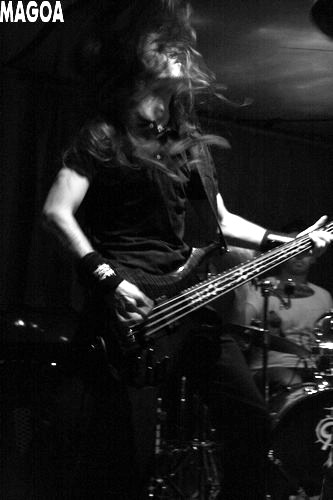 La soirée est maintenant bien avancée et c'est au tour de Magoa de monter sur scène pour clore la soirée. Passé il y a peu en première partie de Faithless Messiah à la Scène Bastille, le groupe devra s'accommoder d'une plus petite scène mais c'est tout naturellement que les musiciens prennent possession de l'espace. Alors que le set a déjà commencé depuis une bonne paire de minutes, un des guitaristes continue de s'attarder à côté de la scène en branchant tranquillement sa guitare. Une fois le problème réglé, il est grand temps de passer aux choses sérieuses. Et Magoa ne rigole pas, puisque c'est un set ultra carré qui nous a été concocté ce soir. Peu de discussion entre les morceaux donc, sauf pour promouvoir leur premier album à sortir au mois de mars. En plus d'être maîtrisé, le death aux accents industriels, hardcore et parfois même sludge de la petite bande est servi par un son tout à fait remarquable pour le matériel mis-à-disposition. Les compositions s'enchaînent avec fluidité (mention spéciale pour "Swallow the Earth") et le public réagit positivement même si peu de pogos seront à dénombrer. Néanmoins, mis à part un bassiste headbangeur professionnel, les musiciens restent trop inhibés, concentrés sur leurs instruments et tout comme pour Denium, un peu plus de présence apporterait une dimension supplémentaire au set et permettrait au groupe de se bâtir une solide réputation scénique. Et même si le chant plus clair par instants n'est pas toujours convaincant, Magoa prouve ce soir être un groupe de qualité avec un son tout à fait particulier, gras et entraînant au possible capable d'offrir, malgré son manque de présence, une prestation de réelle qualité. Attendez-vous d'ailleurs à ce que la sortie de leur premier album ne passe pas inaperçue car on tient là, à mon avis, un gros poisson.