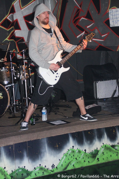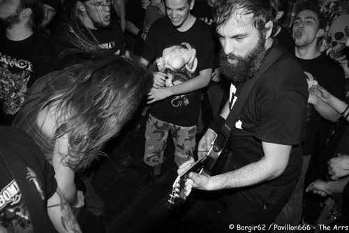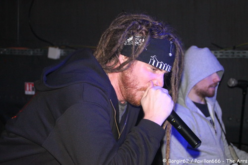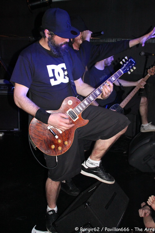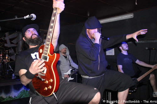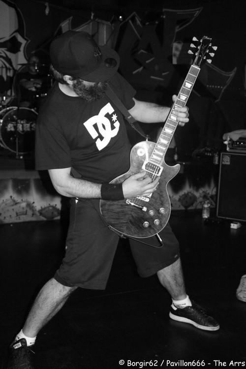 Arrive alors un groupe de Normandy Hardcore : Nobody’s Straight. Le groupe officie dans la pure veine du hardcore. Et là, la sauce prend extrêmement bien. S’appuyant sur jeu de scène bien léché, le groupe originaire d’Alençon va se mettre le public dans la poche. Nobody’s Straight se prétend taillé pour la scène, ils étaient donc attendus au tournant, et ils nous ont parfaitement préparé pour The Arrs…surtout avec certains passages sonnant comme la tête d’affiche (“What The Fuck Up” me fait penser à “Cannibale”). La comparaison ne s’arrête pas là, puisque eux aussi nous proposent des textes et français et en anglais. Cette alternance n’a de cesse d’accentuer le rythme, et on ne se lasse pas une minute de la prestation au chant de Thomas. Derrière, ça bouge aussi, avec Clément et Florian qui utilisent bien la petite scène de la Péniche. L’ambiance monte encore d’un cran et les pogos se retrouvent désormais accompagnés accompagnés de circle pits, avec un public qui répond à la moindre demande du groupe. Tout semble donc prêt pour accueillir The Arrs dans les meilleures conditions.