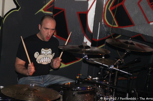 Et enfin, ils arrivent, The Alien’s Right Respect Sect se présente face à un public qui s’est considérablement rapproché de la scène ! Et la, le public va tout simplement exploser. Relativisons ces propos, ça ne tiendra pas du gros feu d’artifice, mais vu la modeste affluence, on peut être tout à fait satisfait de l’ambiance que mettront les fans ce soir. Le public attendait beaucoup de ce concert, et les parisiens leur en ont mis plein la vue, et ce pour plusieurs raisons. Tout d’abord, le groupe va nous livrer un set qui, s’il ne constituera pas une surprise en soi, va mettre le public dans le bain directement ! “Cannibale” et “Sombre Univers” ouvrent le bal, et on s’aperçoit immédiatement que le concert portera principalement sur le dernier opus du groupe, « Héros/Assassin ». Et comme pour nous faire taire, c’est “Dieu Dans Leur Monde”, issu de « Et La Douleur Est La Même ». L’air de rien, ce morceau a déjà 5 ans, et il est très probable qu’une bonne partie du public ne connaissait pas le groupe à cette époque. Pourtant, beaucoup pousseront la chansonnette et se jetteront sur le micro dès que Nico leur offrira cette opportunité. Car là aussi, c’est une des raisons pour lesquelles ce concert sera mémorable. Combien de fois les parisiens communieront avec le public ? Bien sur, le fait de tendre le micro au public n’est pas une chose rare, mais d’autres faits viennent s’ajouter à cette fête. Nico qui nous fait un crowd surfing ou qui chante au milieu du public, ou Paskual qui trouve la scène trop petite pour lui et qui va se mettre au milieu d’un wall of death. Tout ça vient s’ajouter à une setlist parfaitement maîtrisée, avec entre autres, “Heros/Assassin” (j’ai envie de dire : encore heureux !), “Passion” ou “Deliverance” en guise de rappel. Un peu plus d’une douzaine de morceaux et déjà il est temps de quitter la Péniche, qui vient d’être l’hôte d’une très bonne soirée metalcore ! L’année 2011 commence plutôt bien.
