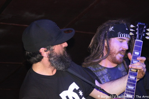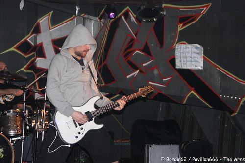 Enfin bref, parlons du concert en lui-même. Inayah débarque sur scène et je découvre complètement ce groupe. Jouant un metalcore assez classique, Inayah ne propose pas grand d’un point de vue originalité, mais on est en présence d’un groupe qui prend plaisir sur scène. Le public, timide au départ, se rapprochera au fur et à mesure du set, pour finir sur quelques pogos sur les derniers morceaux. Pour ma part, mention spéciale au titre “Bliss”, qui met en avant toutes les qualités que possède le groupe. Le groupe a d’ailleurs profité de ce concert pour proposer sa démo gratuitement au public qui s’est précipité dessus, symbole s’il en est d’un intérêt certain pour le groupe. Inayah donne l’impression d’aimer la scène, et pour une première partie, on assiste à un groupe qui bouge bien. Plutôt plaisant il faut le souligner.