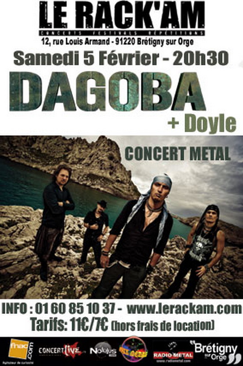 Une première fois est toujours mémorable, que ce soit en bon ou en mauvais. Pour ce samedi 5 février, date de ma première visite au Rackam, j'ai eu la chance de cumuler les deux, grâce à Doyle et Dagoba. Je vous passe ma surprise en arrivant devant les lieux, une petite salle isolée, qui ne paye pas de mine, un plafond très bas et une salle qui, à première vue, ne semble pas être de configuration optimale pour un concert métal. Néanmoins, avec Dagoba en tête d'affiche, on ne fera pas la fine bouche, et ce quelque soit la première partie. Doyle, que j'avais pu découvrir lors d'un concert à Sequedin, à quelques kilomètres de Lille, a le privilège d'ouvrir pour un groupe dont les prestations scéniques sont toujours un régal. Lors du concert de Sequedin, les parisiens ne m'avaient pas fait une très bonne impression, mais à l'époque, j'avais mis ça sur le compte de plusieurs facteurs, tels que la salle qui ne permettait pas d'avoir un bon, un public apathique et le fait qu'il ne s'agissait pas d'une grosse affiche. En revanche, ce soir, pas d'excuse possible. En effet, le public semble fin prêt pour le concert, la salle (Dagoba le prouvera) permet d'avoir un bon son (du moins pour ce soir), et ouvrir pour Dagoba est un moyen pour booster un petit groupe. Mais voilà, Doyle va nous proposer un show des plus horribles qu'il m'est été permis de voir. Un son extrêmement mal réglé, un groupe qui ne colle pas du tout au style proposé par Dagoba. Une sorte de metalcore tendance screamo mal maîtrisé avec un chant à la limite de l'audible...Il n'y a en fait que le frontman qui va donner une once d'intérêt grâce à sa mobilité sur scène. Une prestation calamiteuse, même si quelques spectateurs (principalement les plus jeunes) applaudiront à la fin du set. Entre temps, beaucoup sortiront s'aérer, cotoîeront le bar, ou rigoleront face à un groupe qui en aura amuser plus d'un.
