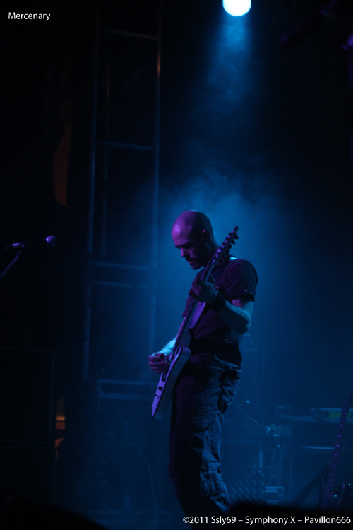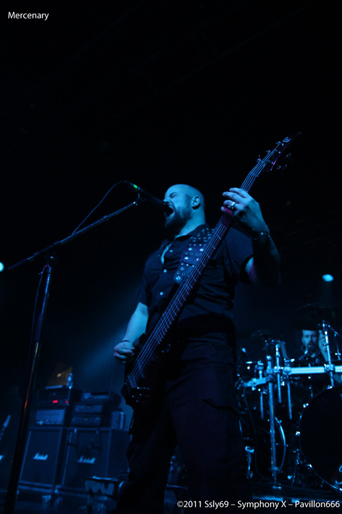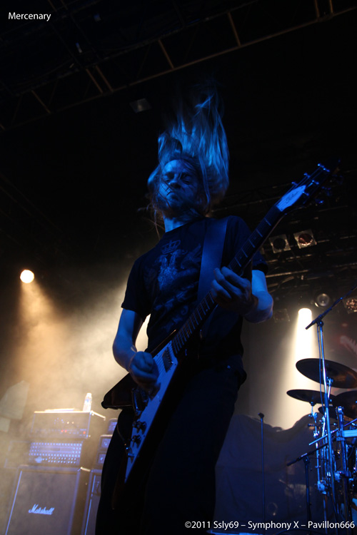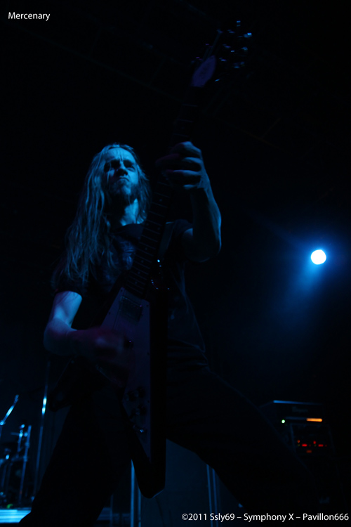 C'est au tour de Mercenary de prendre place et ça commence sur une petite note d'humour, après l'installation du matériel par le groupe, une rapide mise en place et un petit "faites comme si vous ne nous aviez pas vu" nous laisse entendre que le groupe est bien là pour nous faire plaisir. Le groupe, bien que créé en 91 au Danemark ne semble pas vraiment connu du public, il en profitera toutefois pour nous faire découvrir une partie de son nouvel album avec en autres les titres "Through the eyes of the devil" et "In the river of madness". Ce qui grace à la puissance vocale et au charisme du chanteur aura pour effet de nous séduire. Le groupe prend vraiment plaisir à se produire ce soir, et on ne pourra pas lui en vouloir, bien au contraire.