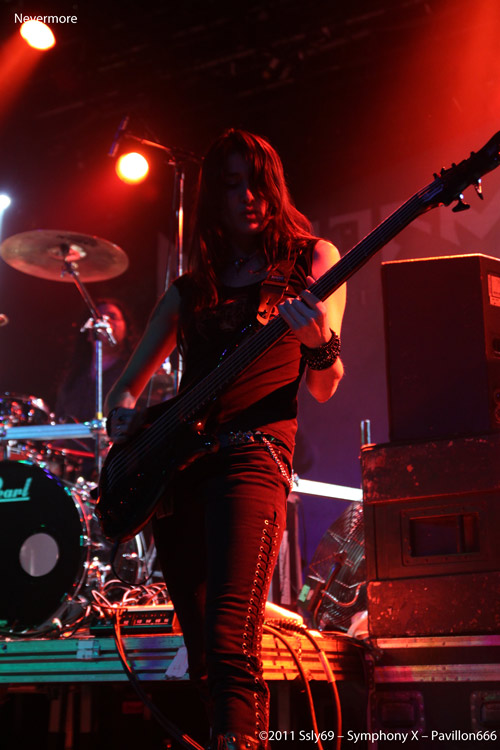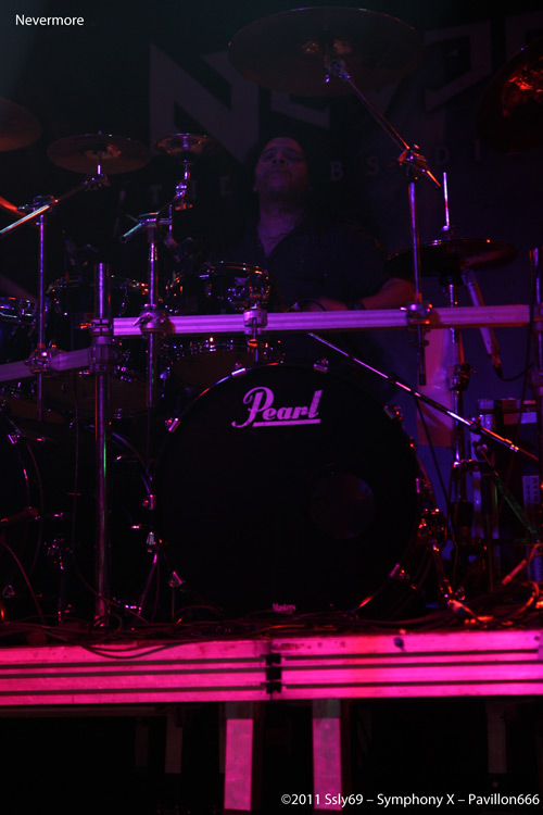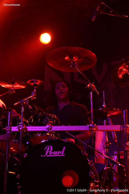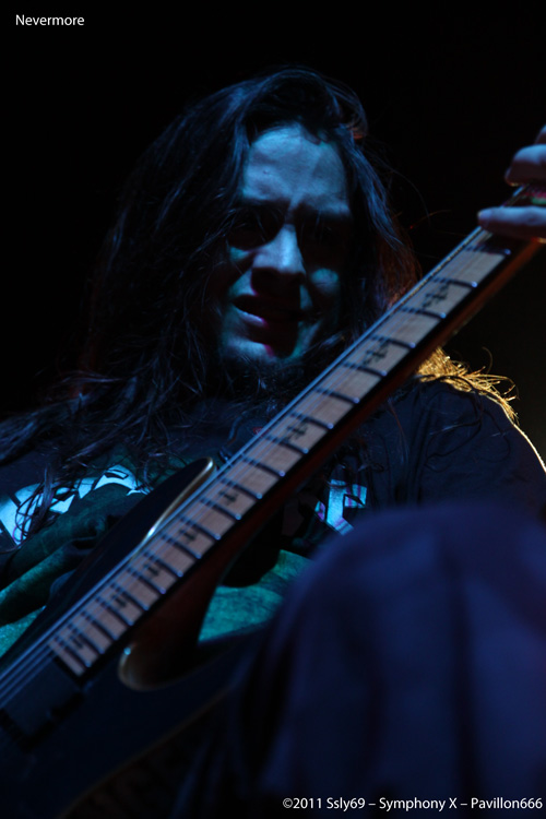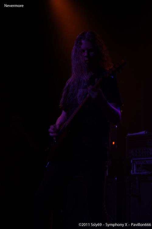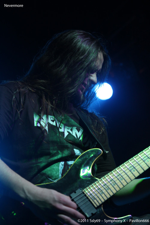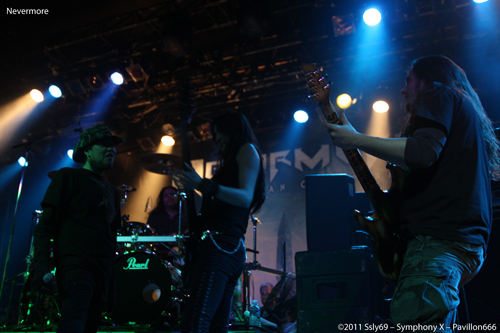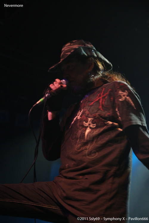 On peut maintenant se préparer à l'essentiel de la soirée, avec l'arrivée de Nevermore, la salle a enfin eu le temps de se remplir (ou presque) et le show peut prendre place. On entame de suite en beauté, et Warren Dale semble en très grande forme, dès le départ il saute dans tous les sens, son chant est vraiment énergique et les autre membre sont tout aussi motivés. "Inside four walls" qui ouvre le set sera joué avec brio et laisse présager présager un show d'excellente qualité. Et les chansons suivantes telles que "Your poison throne" ne font que confirmer ceci. La suite est magnifique, ça déborde d'energie et on ne peut qu'être à fond pendant cet enchainement d'excellents morceaux. La claque est telle qu'on ne peut que se demander comment Symphony X va pouvoir maintenir le niveau. Surtout après la cloture sur "Enemies of reality" qui aura vu monter sur scène un heureux fan qui aura pu s'adonner au plaisir de gueuler dans le micro et de nous montrer ses aptitudes au air guitar alors qu'une bonne partie de la salle l'enviait.