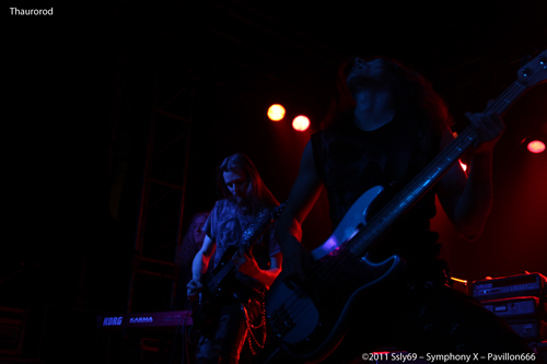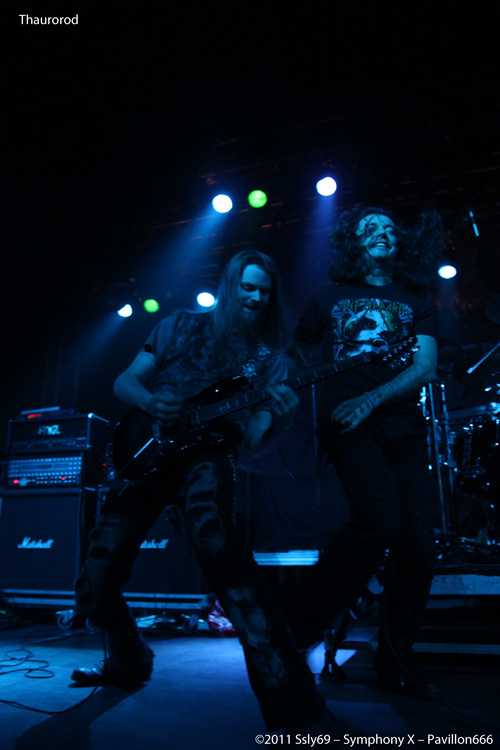 Le "Power of metal tour" pose ses amplis à l'Elysée Montmartre ce soir pour le plus grand plaisir des metalheads parisiens. Cette affiche sera l'occasion de réunir 5 groupes d'horizons différents pour une soirée qui on l'espère sera de qualité. Une fois n'est pas de coutume, l'arrivée sur les lieux se fait sans grande attente; en effet, les portes ouvertes à une heure encore peu avancée nous permet d'éviter l'habituelle file d'attente qui a toujours eu sa place sur les trottoirs adjacents à la salle. L'horaire pour le coup inhabituel aura aussi pour effet de faire monter sur scène un premier groupe devant une salle aux trois quarts vide. C'est donc les finlandais de Thaurorod qui ont l'honneur de nous mettre en bouche ce soir, challenge difficile semble-t'il devant un public encore groggy car pour une grande partie tout juste sortie du travail. Ceci étant, la bonne humeur du frontman semble particulièrement contagieuse, et a le don de donner envie de bouger. Pour leur premier concert en France, les scandinaves sont en effet pleins d'entrain et ça se ressent particulièrement dans leur musique. Le métal symphonique du groupe plait particulièrement grace à des riffs forts et bien placés comme dans leur titre "Scion of stars". Encore un jeu qui en peu de temps aura réussi à nous séduire.