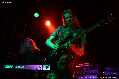 Et pour maintenir le niveau, c'est difficile, Russel Allen et ses acolytes y vont de bon coeur. Dès le départ on est pris dans le mouvement, ça sonne juste et ça a un gout d'excellent Symphony X. Le jeu sur "Paradise Lost" viendra quelque peu ralentir le rythme, bien que ce soit un des morceaux qui auront été du meilleur cru de ce soir, il aura aussi l'effet d'une cassure dans cette partie. Ceci étant, l'euphorie du début n'arrivera pas à revenir, et la suite a quelque peu de quoi décevoir. Après ce que nos yeux et nos oreilles ont pris avec Nevermore, il nous est difficile d'apprécier un set qui, rappel inclus ne nous aura pas donné plus d'une heure de spectacle. Même ce fameux rappel d'une seule petite chanson aura été difficilement obtenu par le public, car "festival et horaires oblige" nous annonce le frontman. Pour au final un jeu moins long que celui de Nevermore, on aura de quoi rester sceptique, pour ma part je trouve ça dommage, mais je suis sûr que les fans présents auraient été ravis de pouvoir en profiter un peu plus.