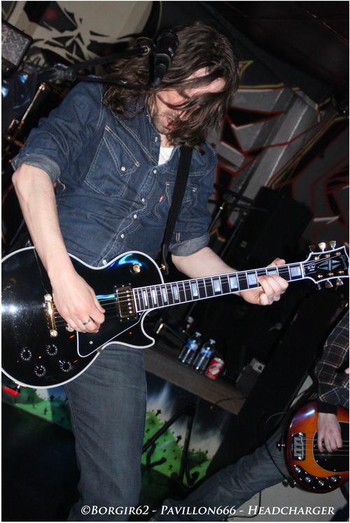 Le clou du spectacle arrive enfin. HEADCHARGER monte sur scène, et les 40 pélerins présents ce soir se rapproche de la scène, leur réservant un accueil assez timide. Très peu de monde donc pour cette belle affiche, mais avec un concert à Mons (Belgique), à 30 minutes de là, le lendemain, on peut y voir une excuse... C'est sur "Up To You" que s'ouvre cette dernière partie, et il ne nous faut que quelques secondes pour comprendre qu'en dépit d'un public peu fourni, Headcharger va jouer le jeu à fond et va donner tout ce qu'il a pour passer une soirée exceptionnelle. Séb est intenable, comme à son habitude avec ses mimiques complètement déjantées, et use de son charisme pour haranguer le public d'innombrable "Venez-Venez-Venez !!!", ce qui a au moins le mérite d'en réveiller certains, et de motiver ceux qui ne demandent qu'à s'amuser.