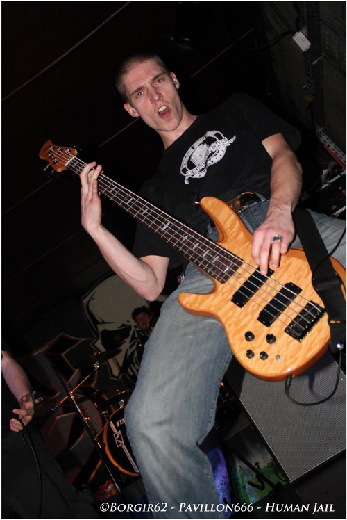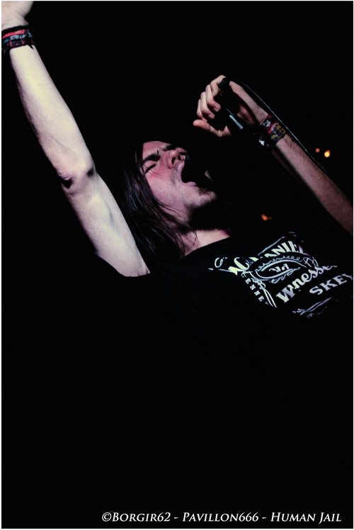 C'est avec une légère appréhension que je vois les HUMAN JAIL monter sur scène. Quelques jours avant le concert, je décidais de m'intéresser à ce groupe, juste histoire de. Après ces quelques écoutes sur le myspace, je craignais le pire, la version studio n'étant pas des plus réussie. Heureusement, il ne faut qu'un morceau pour me faire changer d'avis ! Comme quoi, il existe des groupes taillés pour la scène, et d'autres qui, sortis des studios, sont incapables de prouver quoi que ce soit. Avec un certain penchant pour Down, les lillois nous livrent un set fougueux, avec pas mal de touches à la Pantera ou...Headcharger. Les influences Stoner font un bien fou, et les Human Jail nous montrent qu'ils sont de logiques guests ce soir. Avec un meilleur son que ce que les maubeugeois ont précédemment connu, H.J profite d'un public qui commence tout doucement à se rapprocher de la scène, et le groupe semble d'ailleurs de plus en plus motivé et son aisance sur scène s'accroit de morceau en morceau, vec notamment un Max qui se démène. Une excellente surprise donc, et un groupe à revoir pour confirmer cette très belle impression,