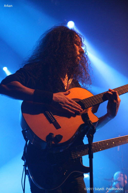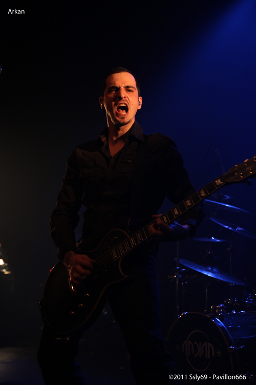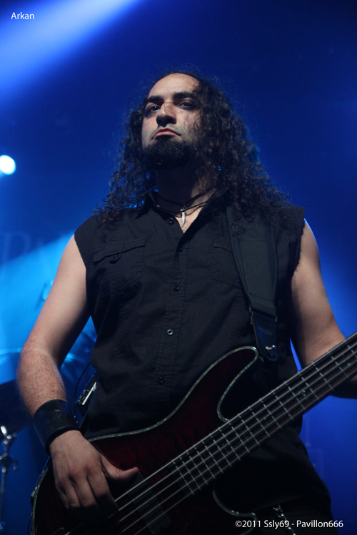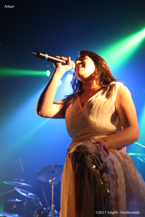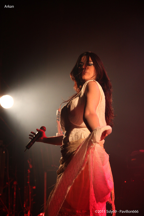 Pour ce qui est de la première partie, elle sera assurée par ARKAN, groupe qui vient tout juste de sortir son deuxième album "Salam". Ce sera pour eux l'occasion de nous faire découvrir une bonne partie de cet album. Le groupe prend de suite une bonne place sur scène et nous offre vraiment ce qu'on peut appeler un show, la voix de la chanteuse fait rapidement penser à des groupes réputés, au point qu'on aura rapidement une impression de déjà vu, le duo avec le growl du chanteur renforcera cette impression. La formation parisienne montre quand même qu'elle a acquis une bonne expérience, leur prestation reste très propre, et leur musique ne souffre d'aucun défaut. Le public semble tout de même mitigé, et les réactions de celui-ci restent nuancées. Arrivé à le fin du set, c'est surtout cette sensation de déjà fait qui restera la plus présente, bien que l'ensemble reste parfaitement exécuté, ceci m'aura empêché de véritablement apprécier ce groupe.