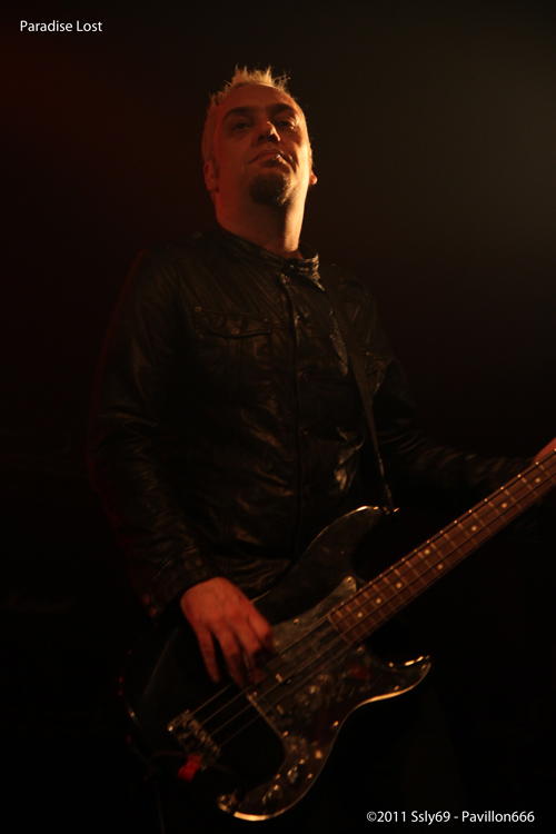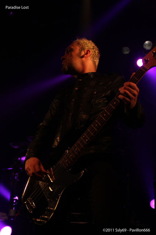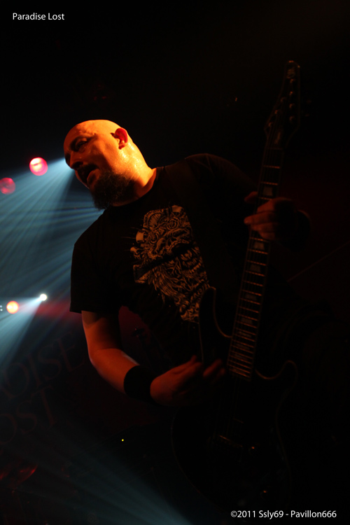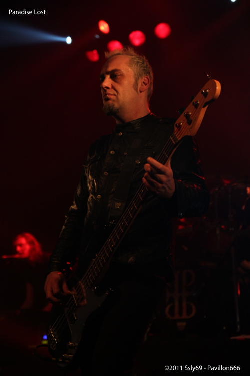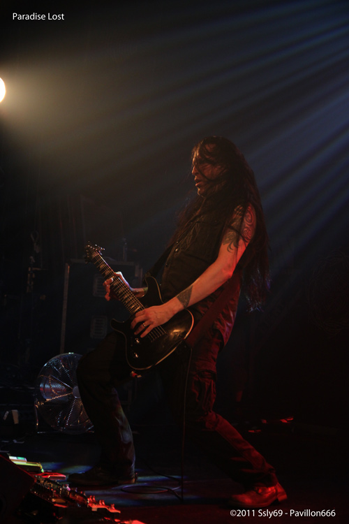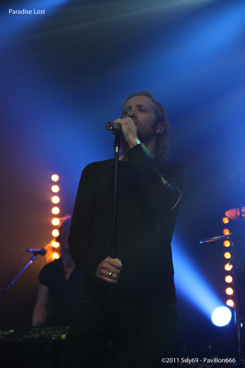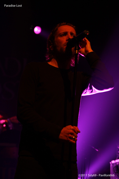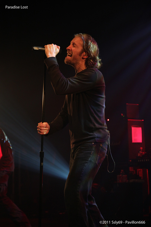 La foule montre de suite son enthousiasme lors de la montée sur scène des membres de PARADISE LOST, l'idée d'avoir ce soir une perfomance dédiée à l'album qui pour beaucoup est considérés comme l'un des meilleurs (si ce n'est LE meilleur) que la formation ait créé. Pour le coup, les morceaux tels que "The last times" restent parmis ceux qui sont le plus parlants sur scène, et le groupe y met beaucoup de bonne volonté. La set-list sera donc bel et bien l'album au complet et dans l'ordre de celui-ci. On se demandera comment fait le bassiste pour tenir la totalité du concert dans son cuir fermé, alors que la température dans la salle ne cesse de grimper. Nick Holmes ne semble pas au mieux de sa forme, et le chant s'en ressent légèrement, cependant le public restera motivé, et alors que le groupe termine son show sur "Jaded", les acclamations fusent déjà. Partie intéressante et qui va répondre à la question, "mais qu'est ce qu'on va avoir en plus de "Draconian Times"?" J'ai envie de dire : du lourd! Si "Faith divides us" reçoit un bon accueil du public, c'est sur "One second" que ce dernier va vraiment se déchainer. Ce rappel sera cloturé par "Say just words", ce qui a pour effet de laisser le public encore chaud bouillant dans cette salle qui a pris des allures de four. Encore quelques acclamations, et c'est pour un dernier rappel de deux morceaux que le groupe nous apparaît pour la dernière fois ce soir. Cette soirée sera donc cloturée par le titre "As I die", sur lequel le groupe aura encore profité de faire participer le public. C'est aussi sur ce dernier rappel que le clavier se fait le plus présent, quelques peu effacé depuis le début de ce concert, on l'en aurait presque oublié.