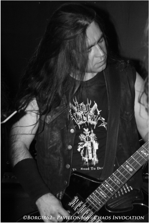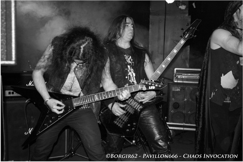 Les français cèdent alors la place aux allemands de CHAOS INVOCATION. Un monde sépare les français des 3 groupes qui vont suivre (ce qui se comprend puisque DN ne se décrit pas et n'évolue pas dans le registre black metal). Avec Chaos Invocation, nous allons avoir le droit à un Black Metal sombre, malsain, cérémonial et mis en scène. Urne cinéraire, introduction sur un rite religieux obscur et hémoglobine notamment pour une excellente surprise. Les allemands nous délivrent un set impressionnant et extrêmement bien maîtrisé ! Certes, la musique balancée par Chaos Invocation n'apporte pas vraiment d'innovations au black metal, mais le tout est sacrément bien ficelé ! Là encore, le groupe bénéficie d'un son irréprochable et d'un public dans l'ensemble agréablement surpris par ce qu'il voit. Il y a de quoi tant le son proposé par la formation est bon et les 35-40 minutes passées en compagnie de Chaos Invocation passent très (trop?) rapidement. Personnellement je ne connaissais ni d'Eve ni d'Adam cette formation, mais bon sang ! Quelle énorme découverte !