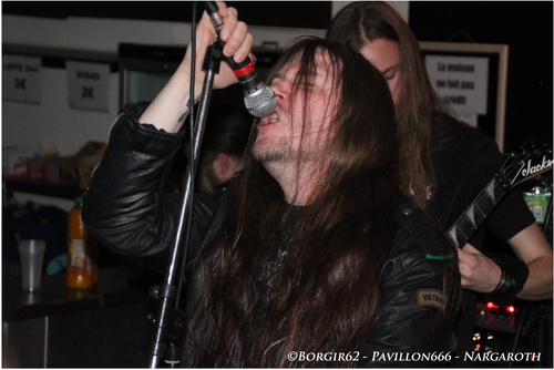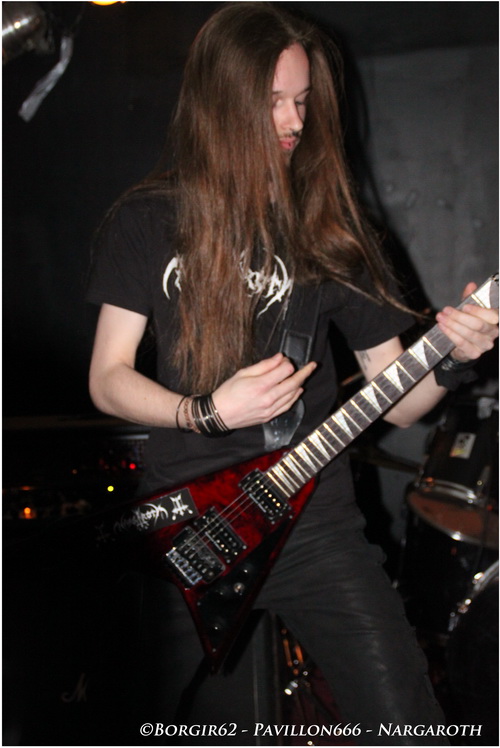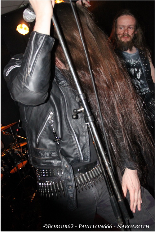 La soirée touche bientôt à sa fin, mais avant de quitter les lieux, NARGAROTH arrive en civil, à savoir sans maquillage... Plutôt logique, cette soirée ressemble davantage à une répétition face à un parterre de privilégiés, donc il semblait complètement inutile de sortir la peinture. D'ailleurs, je pense que personne n'aurait été surpris si le set avait été tronqué de plusieurs titres, mais Nargaroth se sera relativement bien comporté.. Cette amertume grandira d'ailleurs au fil de la tournée, avec par ailleurs ce communiqué disponible en page d'accueil du site officiel, dont je parlais en préambule. Le show débute est d'emblée on ne peut que se satisfaire de ce spectacle. Tout est là, un son parfait, les premiers instants donnent le ton. Ash, comme à l'accoutumée est avare de paroles et enchaîne les morceaux sans porter trop d'attention aux quelques individus présents. Peu importe, on est pas là pour discuter pendant le set. En ouvrant sur "Black Metal Is Krieg", la bande à Kawulf ne surprend personne et s'impose directement. Le show n'est pas des plus animés, mais néanmoins, les spectateurs se prêtent au jeu et se livrent à des headbangs de longues durées. L'impression d'assister à une répétition est d'autant plus forte qu'au même moment, des groupes qui répétaient dans les locaux de l'HDLM quittent les lieux sans trop s'attarder à ce qu'ils ont en face d'eux... La traditionnelle reprise de Burzum, "War", est également à l'honneur, tout comme "Possessed By Black Fucking Metal". Le tout dans des conditions excellentes, un son de qualité et une ambiance des plus intimes. Abstraction faite de la non participation du public, le concert se déroule à merveille, et Nargaroth nous prouve si besoin est qu'il est une figure fondamentale du black metal.
