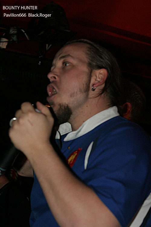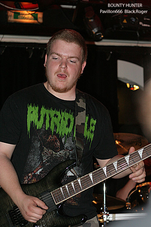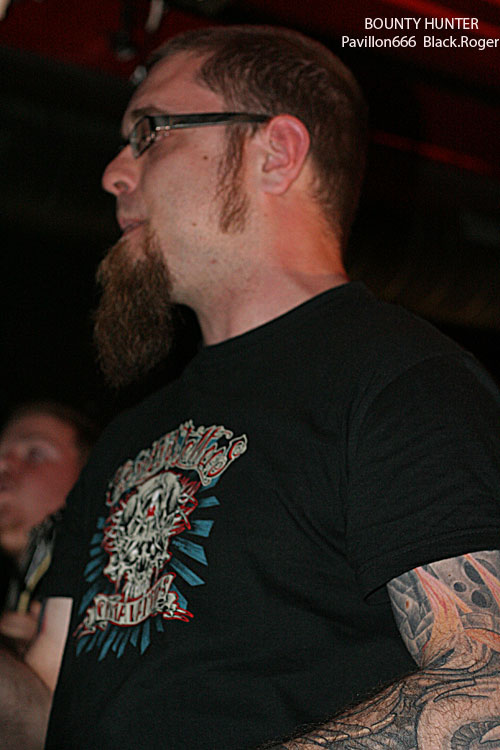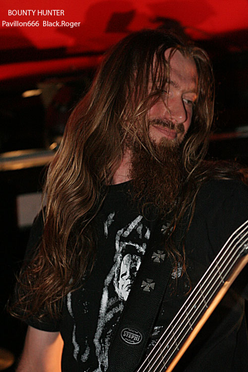 Evidemment il ne manquait plus à l’affiche que les Lyonnais de BOUNTY HUNTER pour nous envoyer du bon grindcore à la figure et les rouleaux de papier toilette également tradition oblige. Comment ? Là devant moi quelqu’un qui ne connaissait pas encore ce groupe qui à sorti son premier album « The True Bounty Hunter Picture Show » il y a peu lors d’une « fiesta » mémorable Ô Totem de Rilleux ? Faute avouée est à moitié pardonnée, on ne dira rien pour cette fois. Alors ce soir BOUNTY HUNTER a la forme, le son un peu moins, en effet les voix des deux « growlers » sont bien distinctes, la basse turbo fait trembler le navire par son omniprésence au détriment de la guitare perdue au fond du Rhône ». Mais bien vite l’ambiance s’installe avec les titres courts, provocateurs, et les coups de boutoir efficaces des compositions annoncées par les samples d’extraits de films. Alors, devant la scène et dans toute la péniche, c’est un joyeux « bordel » qui s’installe avec en écharpe le fameux papier « Q ». BOUNTY HUNTER, malgré la dynamique de ses morceaux, s’apprécie surtout en live, et ce soir encore une fois, nous n’avons pas été déçus du voyage hybride death/punk/grind/core, c .q.f.d.