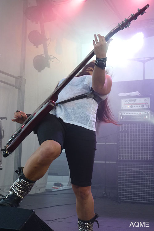 Les Métallurgicales est un festival décidément très friand de bouleversement sonore puisque après le metal opéra de Therion, la soirée bascule vers les sonorités plus brut de décoffrage d'Aqme, le groupe un peu point d'interrogation de la soirée. Car les émotions inspirées par les groupes de Nu metal sont diverses au sein de la scène metal. Il est vrai qu'à la fin des années 90, à force de voir apparaitre un groupe de nu metal français par jour, les oreilles commençaient à subir une sorte d'effet de surchauffe. Qu'allait-il en être 10ans plus tard? Après les guitares de Manigance, puis celles de Therion, et avant celle de Stratovarius, la petite parenthèse Aqme ne fait franchement pas de mal. Sur les planches, le groupe ne donne pas dans la franche délicatesse, mais un bon riff bourrin de base ne parait pas déplaire à une foule bien amassée devant cette scène extérieure. Les musiciens sont impliqués, le frontman bien nerveux et le gros son bien présent. Un peu répétitif et quelques soucis sur le chant clair? Les premiers rangs bien compressés contre les barrières ne semblent guère s'en soucier. La foule s'en donne à cœur joie alors qu'on aime ou pas, il faut bien constater que ce soir, Aqme a fait le boulot, et bien fait. Beaucoup de groupes évoluant dans leur registre ont disparu, mais les parisiens sont toujours là, ce qui veut bien dire quelque chose. Nul doute qu'en conservant cette agressivité, les Aqme devrait continuer de faire parler d'eux.