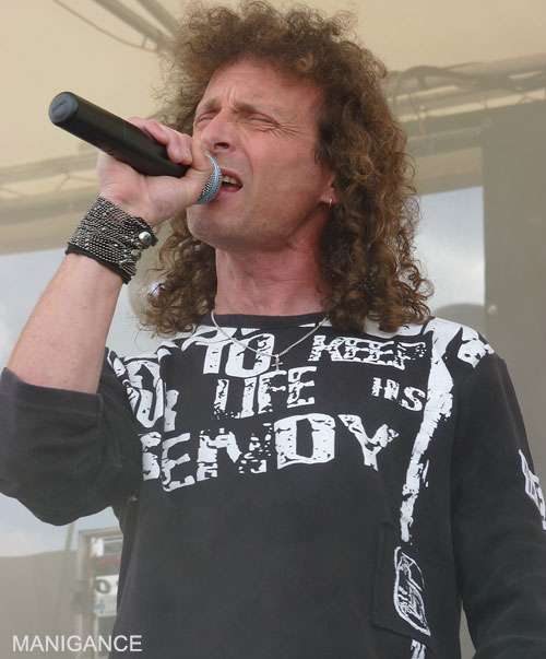 Autant dire que le retour sur Terre s'avère quelque peu brutal avec un passage d'un style expérimental vers un registre déjà plus convenu. Au tour de Manigance de s'exprimer et d'ouvrir la partie heavy metal du jour. Étrangement, le groupe pourtant habitué du live semble peiner à trouver ses repères, avec un chanteur paraissant étonnement désabusé. Puis les titres s'enchainent et le spectacle prend plus de consistance. Le heavy/power produit rappelle la grande période du heavy français des années 80 et semble ravir les amateurs du style. En toute honnêteté, j'avoue que personnellement le chant et les textes ne passent absolument pas, mais alors pas du tout, mais après tout, qui prétend tout aimer n'est surement pas entièrement franc. Bref, alors que le stand à kebab tend les bras vers les moins concernés, les fans de heavy pur et dur sont visiblement séduits par une prestation gagnant en dynamisme et à un style maitrisé et de bonne facture.