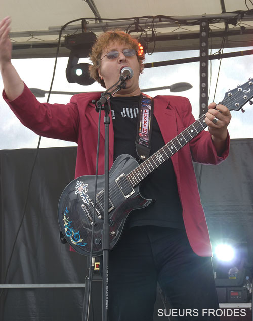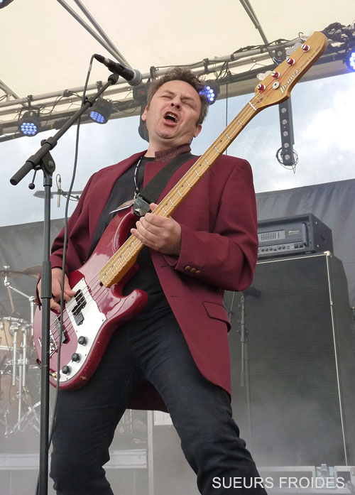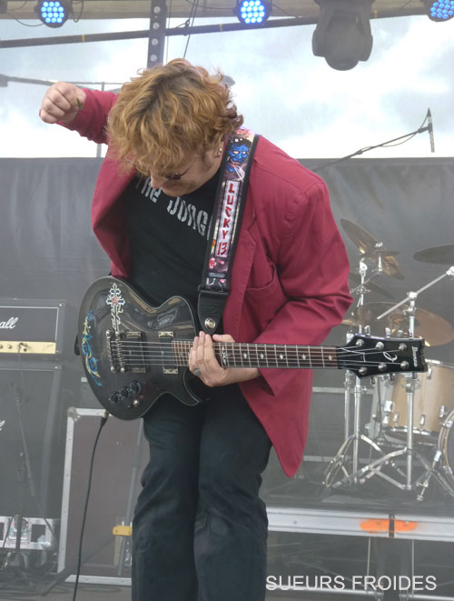 Ce soir, chaque groupe sera précédé d'une allocution de Patrick Roy, choisie parmi ses phrases les plus marquantes. Et c'est donc non sans une certaine émotion que Sueurs froides, premier des 8 groupes de l'évènement, ouvre cette troisième édition des Métallurgicales. Sur scène, le trio semble comme à la maison, à l'aise et dynamique dans son style multi-influences rock/hard rock avec une grosse veine old school non dissimulée. Le public est cependant encore en mode "reconnaissance" et navigue entre les différents stands et points de ravitaillement. Si le set de Sueurs Froides ne déclenche peut être pas de vague d'euphorie, le groupe ne cache pas sa motivation et s'éclate sur scène.
