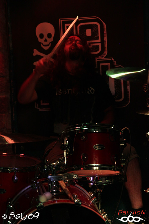 C'est le groupe RED NIGHT qui jouera en premier ce soir, et l'affluence pour ces franciliens est assez bonne dès leur montée sur scène. Ce groupe de Heavy mélodique aura apporté avec lui son public et aura ainsi un bon soutien lors de sont set, on le remarquera notamment lors d'une prière à la bière, rituel qui sera en effet repris en choeur par une bonne partie du public. Au niveau musical, on sentira poindre de nombreuses influences, leur musique étant aussi bien teintée de thrash, que de black, ou encore de prog, et j'en passe. L'ensemble reste très agréable, malgré quelques soucis de réglages en début de set, ainsi qu'une baguette cassée qui vaudra un appel au don avant les derniers morceaux. Ce groupe présente déjà une bonne aisance scénique, et semble particulièrement apprécier le contact avec le public. En somme, une bonne découverte, avec un groupe qui saura vraiment se montrer enthousiaste.