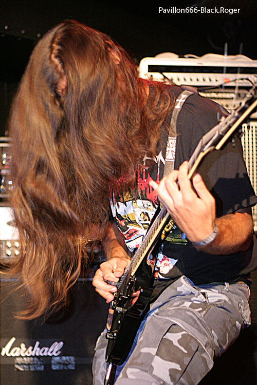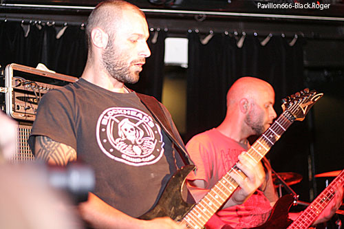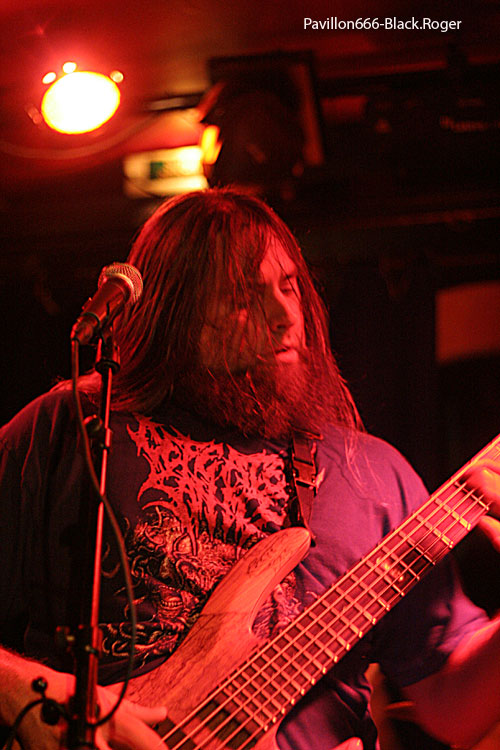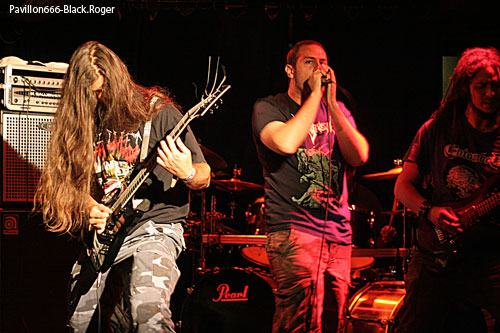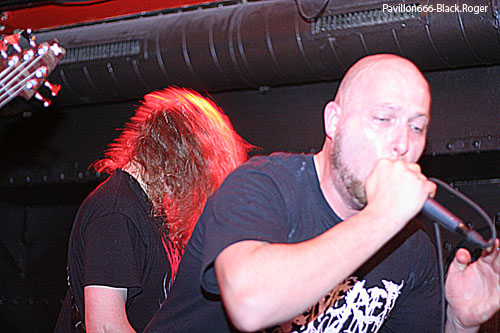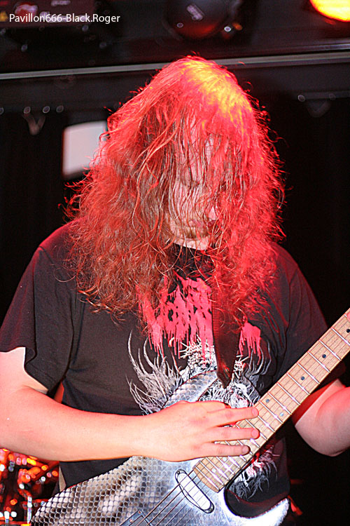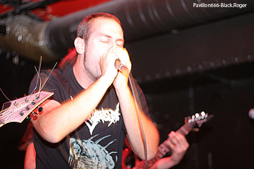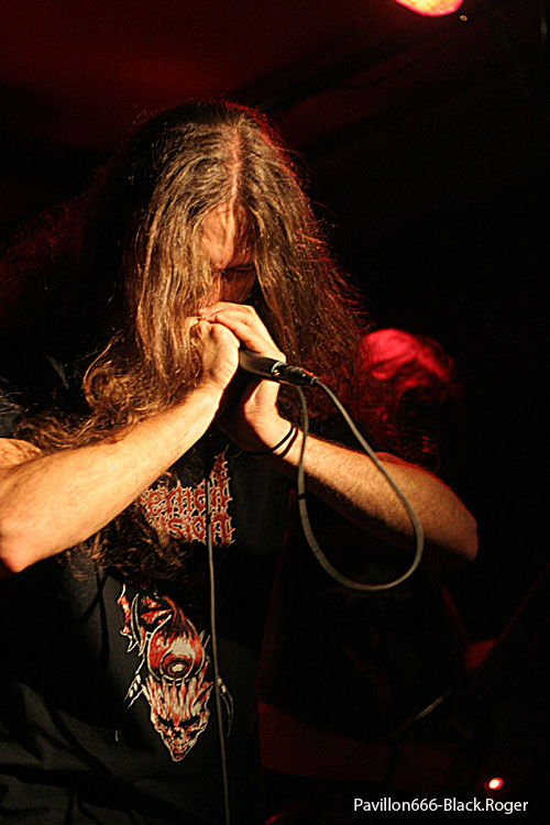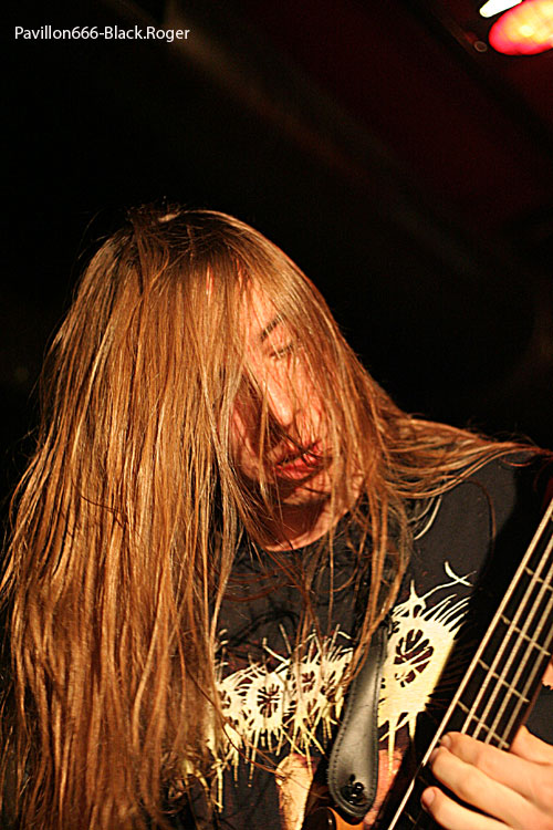 Vers 19 heures 30, le déluge sonore grind/death ne va pas tarder à se manifester. Effectivement, c’est BURNING FLESH, combo Franco/Suisse de black-death saupoudré de thrashcore qui lâche les décibels. Ce soir donc ils ouvrent le concert de belle manière avec des envois dynamiques et énergiques où se mêlent brutalité et technicité. Tout est en place, bien carré, bien « rentre-dedans », comme on aime, et l’on déguste dans tous les sens du terme. Peut-être qu’un son plus costaud aurait mis plus en valeur leurs compositions de gros death qui tâche. Mais ne crachons pas dans la soupe métallique, ce soir BURNING FLESH nous a démontré qu’il tenait toujours aussi bien la scène avec sa sauce piquante de métal extrême. Groupe à suivre donc, on adhère pleinement à leur démarche.